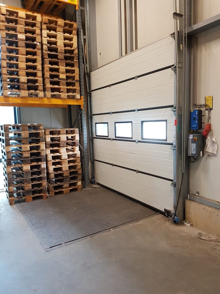 Bedrijfshal voorzien van koeling, lichtstraten, overheaddeuren, betonvloer, loadingdock, pantry en toiletgroep.
