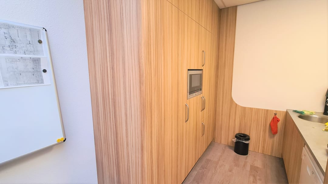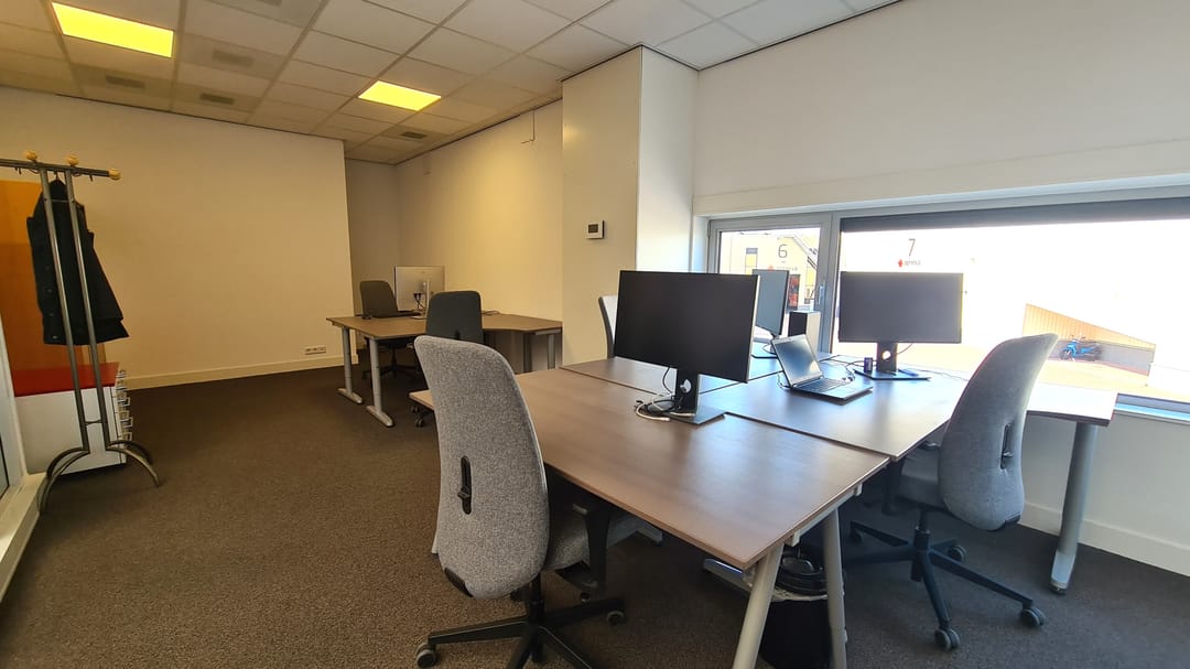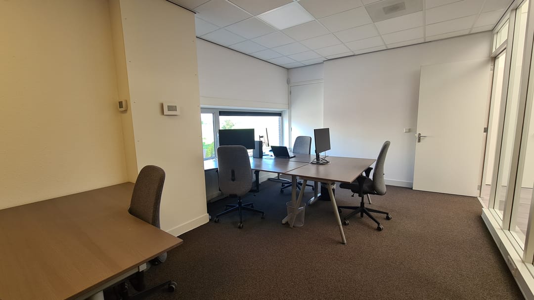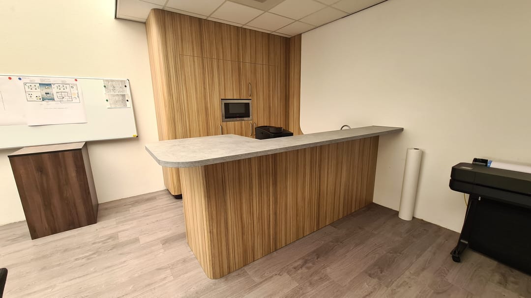 In de bedrijfsruimte is nu een deel afgeschermd voor een kantoorkamer. Deze kan door verhuurder verwijderd worden.