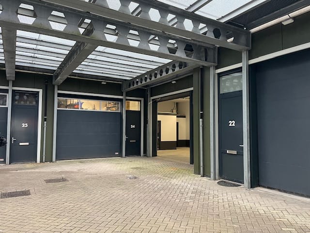 Deze bedrijfsruimte heeft een oppervlakte van circa 75m² en is voorzien van een elektrische overheaddeur (ca. 3.3 x 3.4 m) met aparte loopdeur. De vrije hoogte bedraagt ongeveer 4,10 meter. De unit is voorzien van een kantine welke beschikt over een keukenblok.