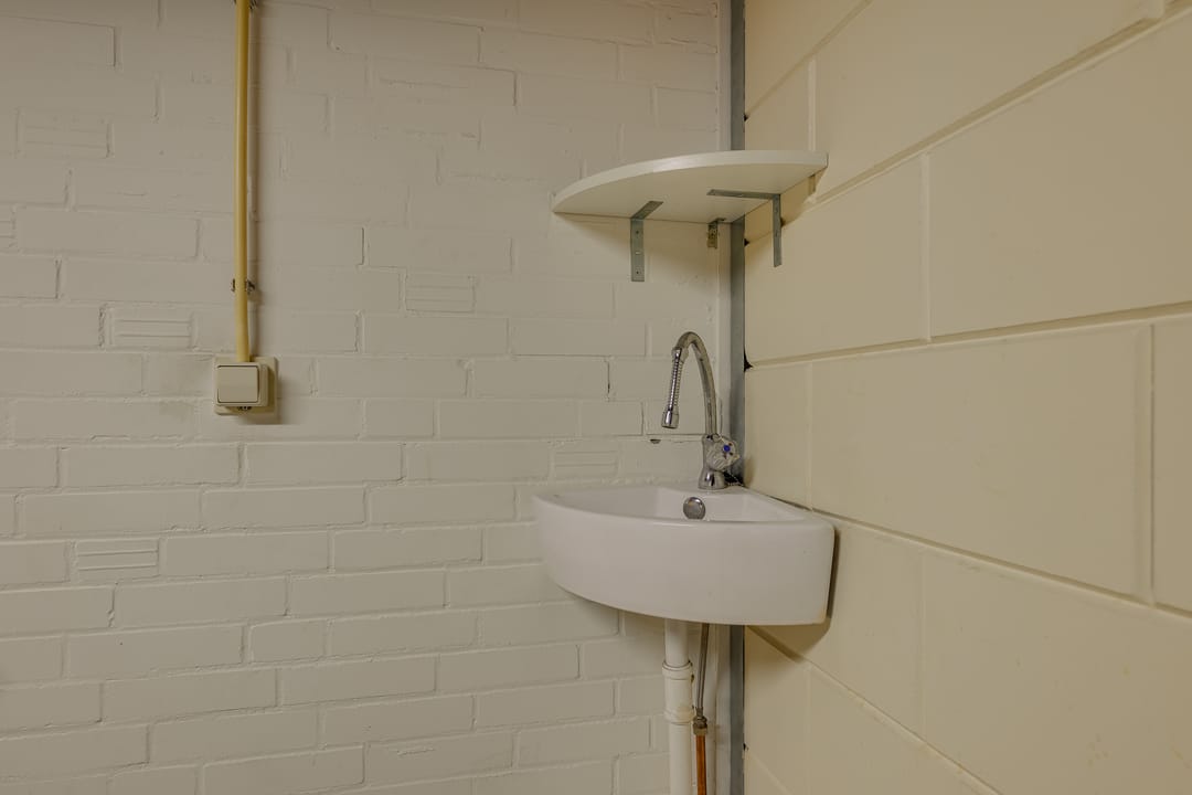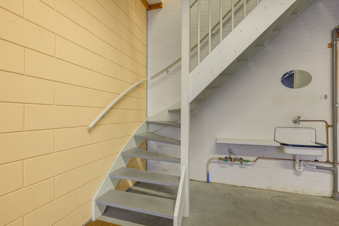 De unit is voorzien van een betonnen vloer, vaste trapopgang naar de verdieping, spoelbak en toilet.