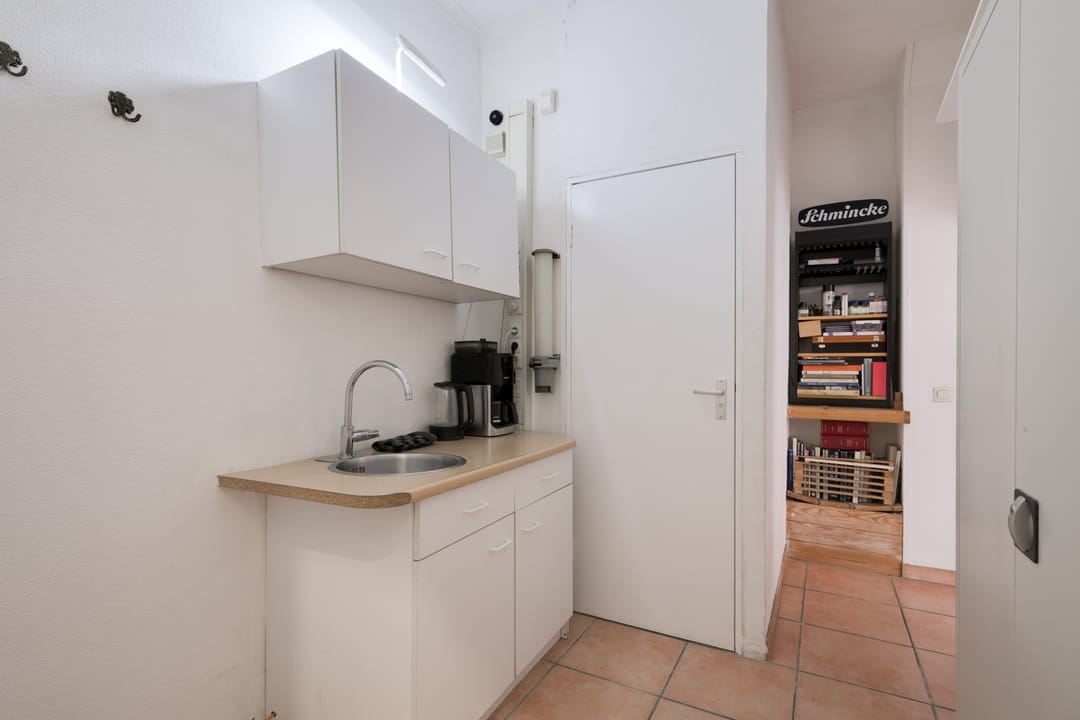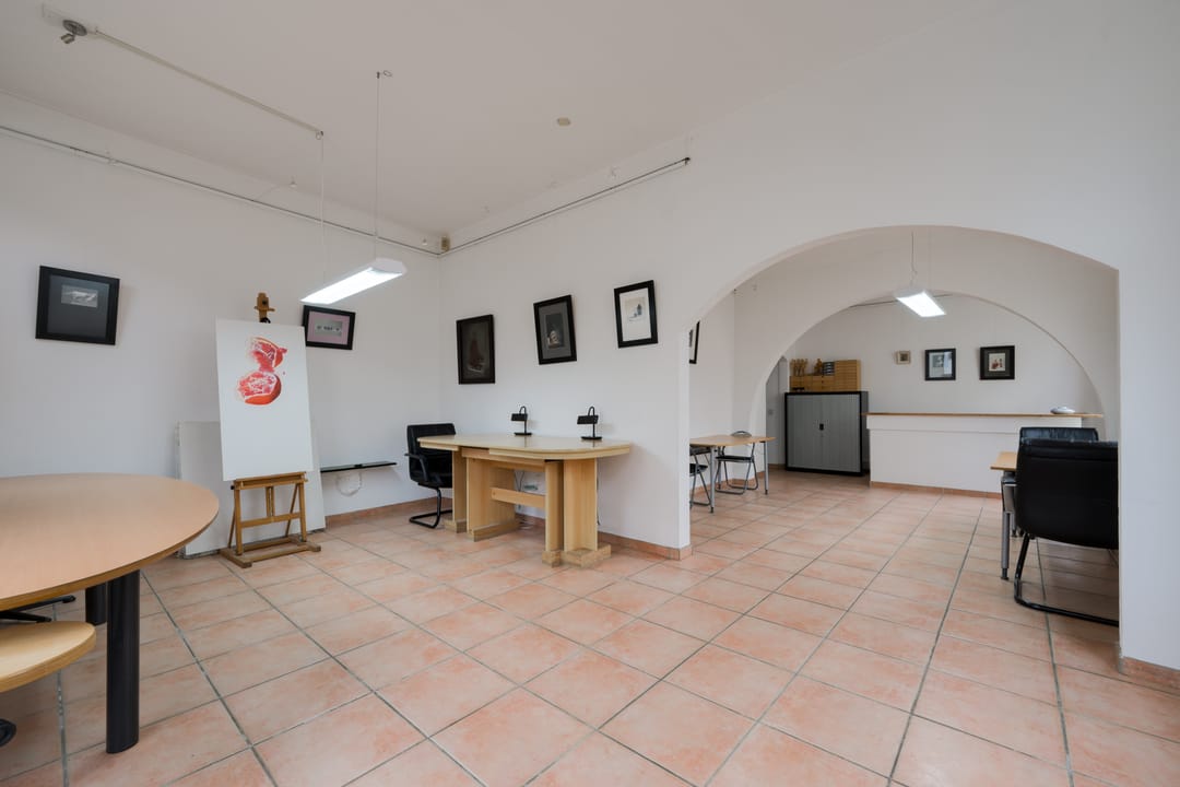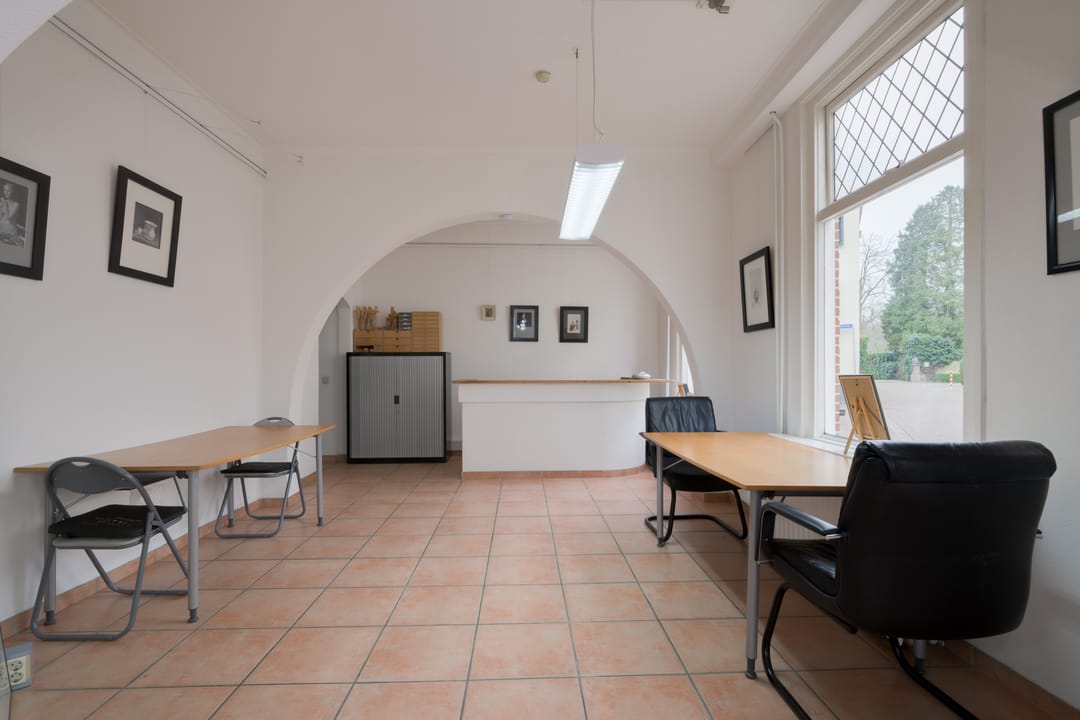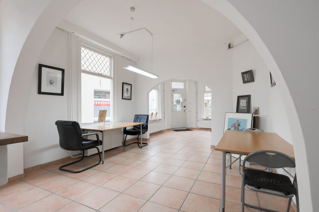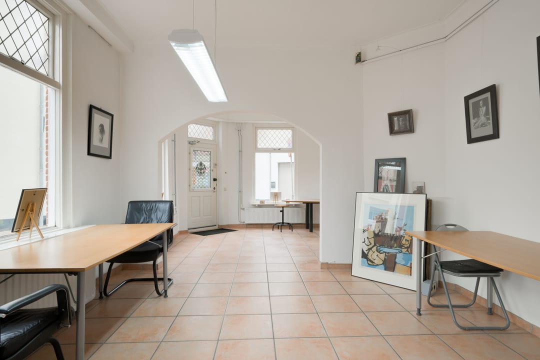 Via de entree kom je binnen in het atelier, een ruimte met veel mogelijkheden. Het is ruim genoeg voor een bedrijf aan huis, maar kan ook eenvoudig worden omgevormd tot een woonkamer met keuken. Vanuit het atelier bereik je de ruime hal, voorzien van een klein keukenblok en een toilet met meterkast. Vanuit deze hal is er toegang tot de kelder en een extra deur naar een kleinere hal, die leidt naar de trap naar de eerste verdieping.