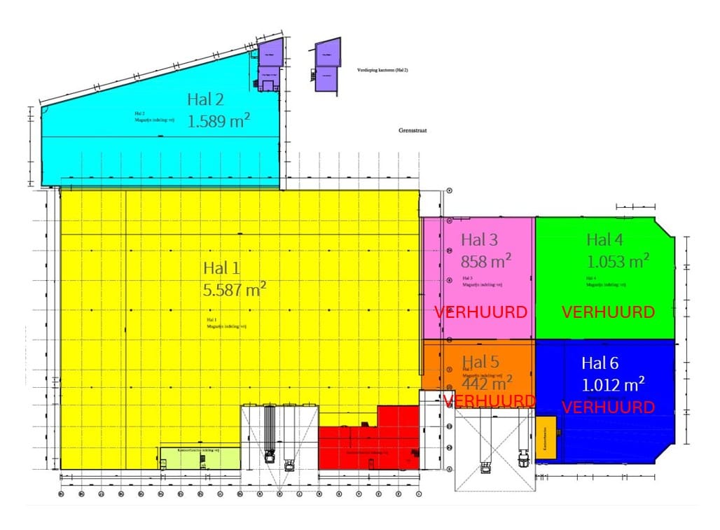 Circa 8.157,5 (van 11.642,7 m²) is beschikbaar voor verhuur en is verdeeld als volgt (deelverhuur mogelijk):