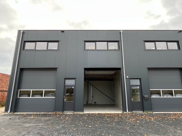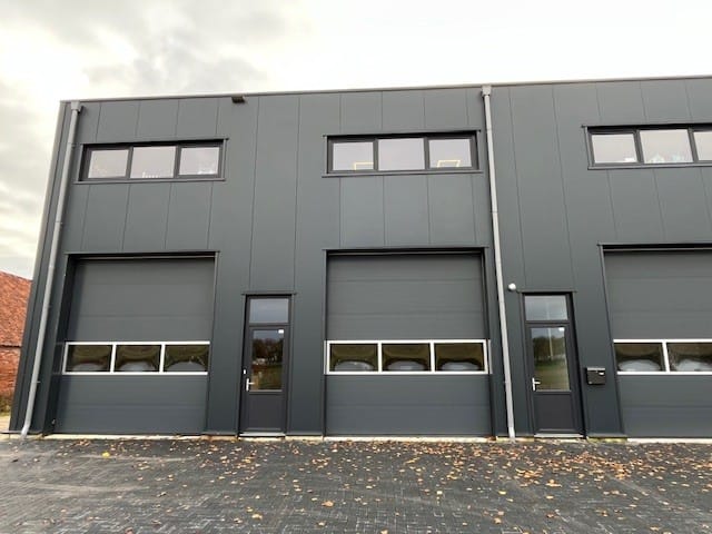 De units zijn voorzien van een loopdeur en een elektrisch bediende roldeur.