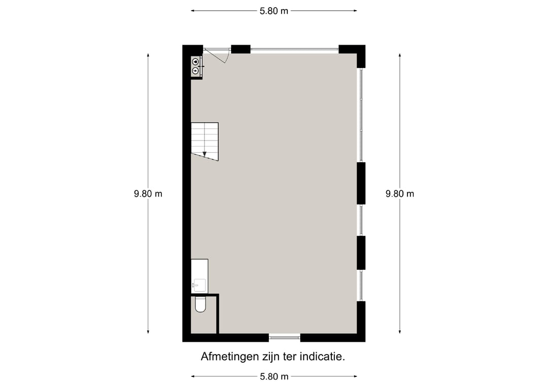 De bedrijfsruimte beschikt over een oppervlakte van ca. 130 m² en is als volgt ingedeeld: