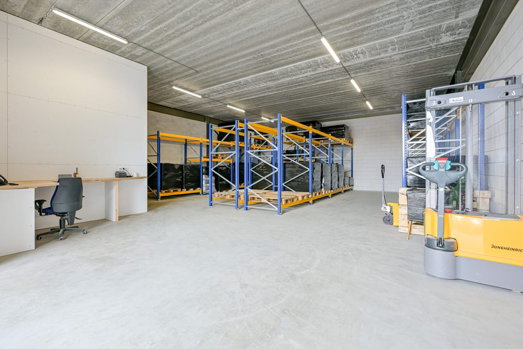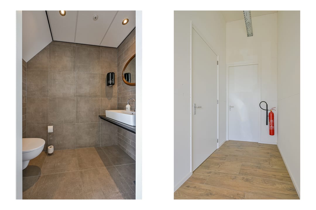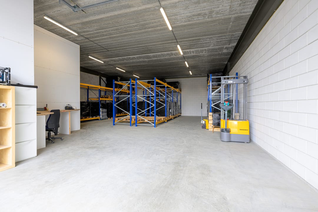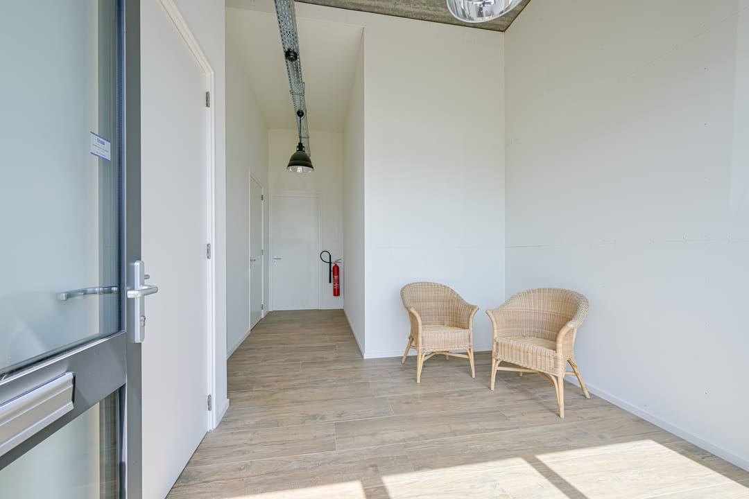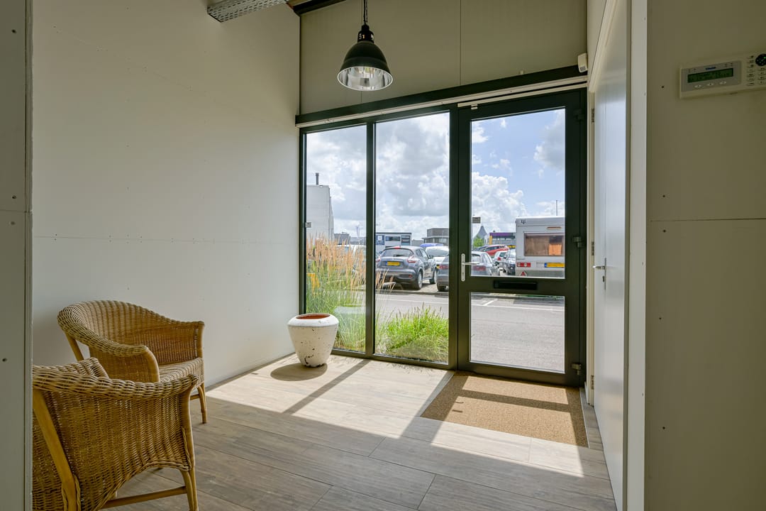 De unit is te betreden via een separate loopdeur die uitkomt in de hal. Vanuit daar kunt u de bedrijfsruimte betreden of direct via de trap naar de eerste verdieping. Daarnaast is de unit ook toegankelijk via een hoge, brede elektrische overheaddeur met daglichtvensters.
