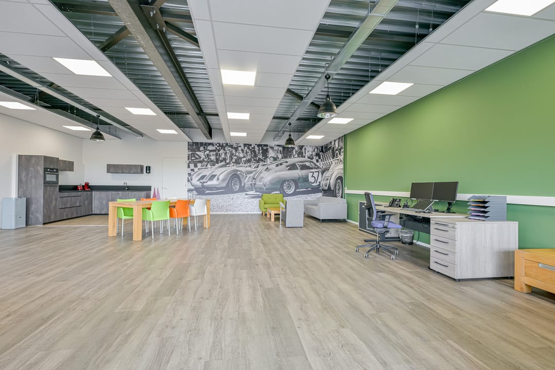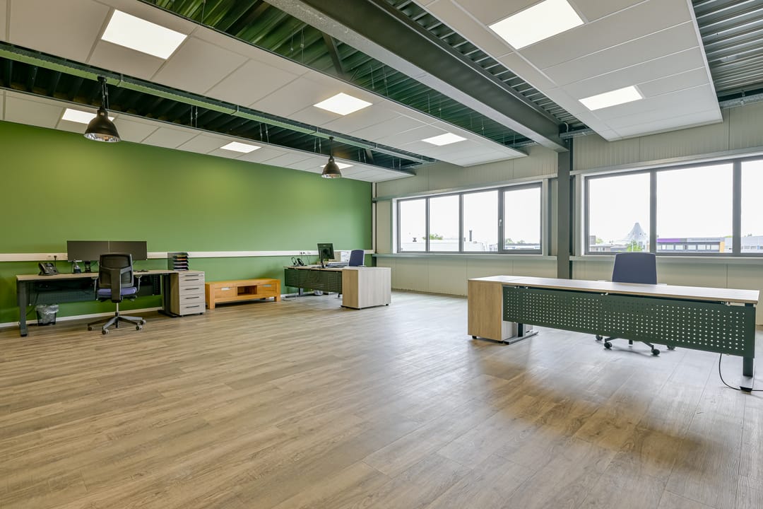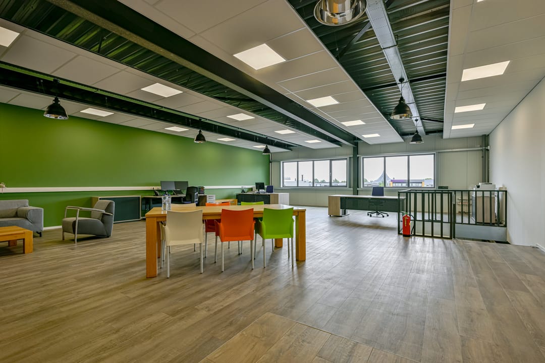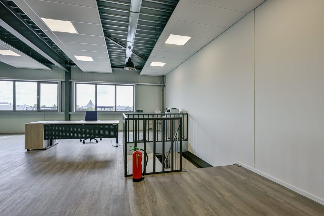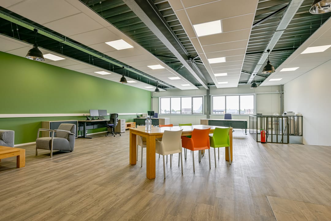 - Kantoren voorzien van systeemplafond, verlichting en kabelgoten;