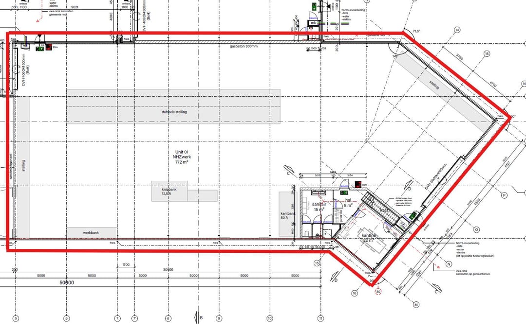 Aansluiting en voorzieningen: water, elektra, krachtstroom, telefoon en internet.