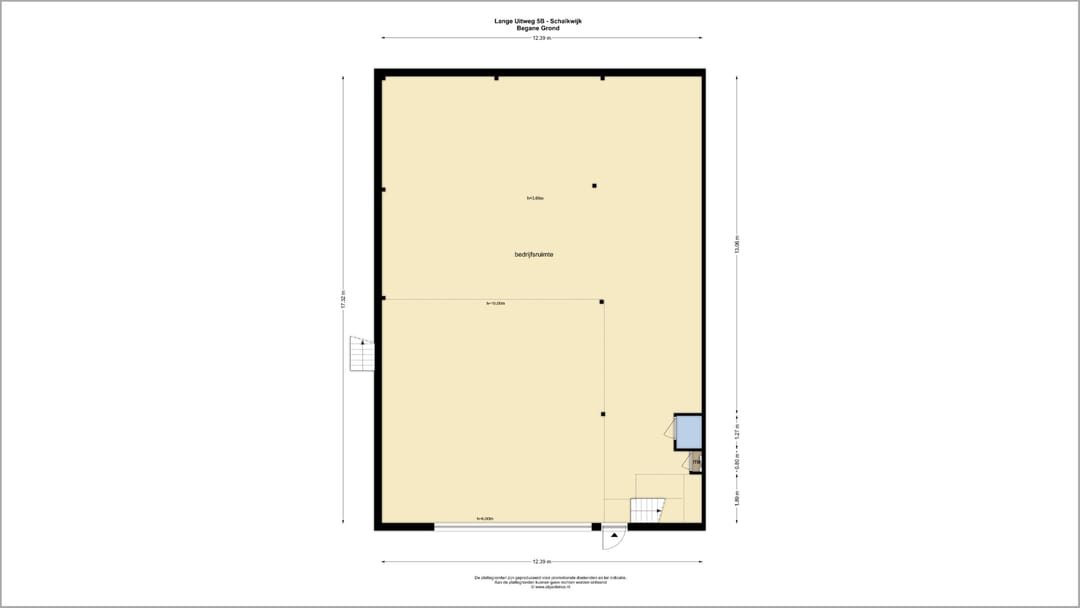 De bedrijfshal heeft een oppervlak van ca. 349 m² verhuurbaar vloeroppervlak, als volgt verdeeld: