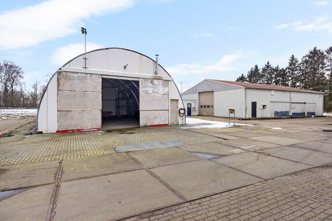 Het buitenterrein is gedeeltelijk verhard (circa 1.000m2) met klinkers en afsluitbaar middels een hekwerk en poort en biedt voldoende ruimte om met grote vrachtwagens te manoeuvreren en te parkeren.