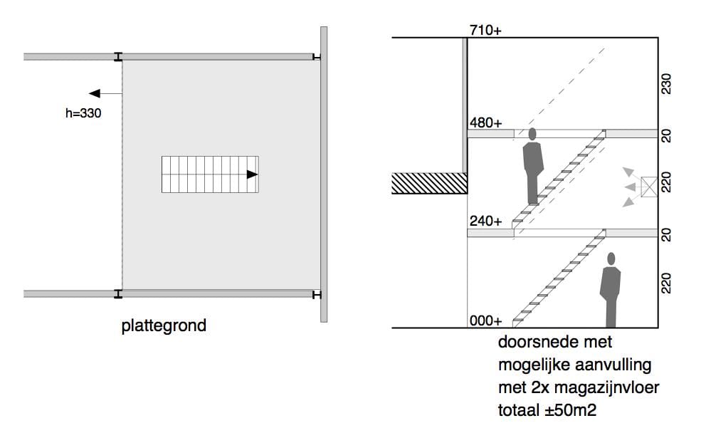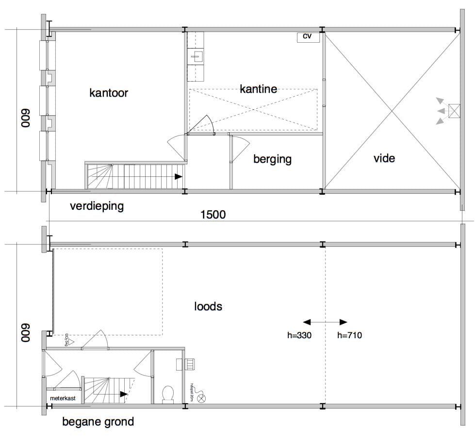 CV, elektrische installatie, verlichtingsinstallatie, ventilatie, brandblusmiddelen, pantry, overheaddeur.