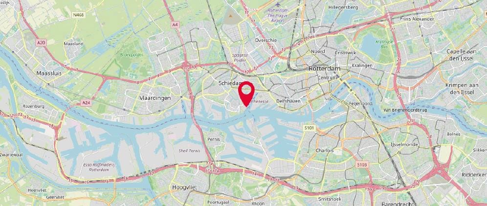 Het pand ligt direct nabij de uitvalswegen A20 (Rotterdam - Hoek van Holland) en A4 (Delft - Antwerpen), waardoor het pand gemakkelijk bereikbaar is vanuit zowel de Randstad als daarbuiten. Ook het openbaar vervoer is goed geregeld, met meerdere bushaltes in de nabije omgeving en Station Schiedam Centrum op korte afstand, waar trein-, metro- en tramverbindingen samenkomen.