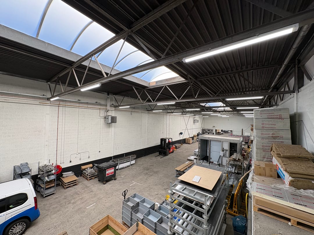 Rooflights, overhead doors, three-phase electric power, concrete floor, heater, toilet and built-in fittings