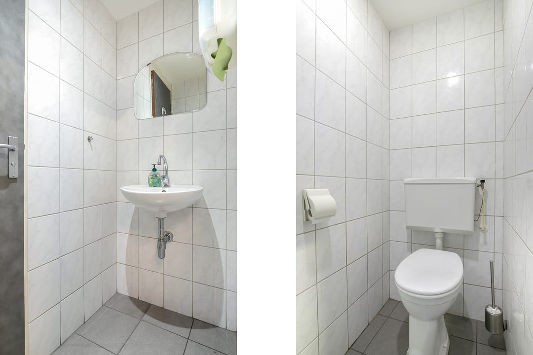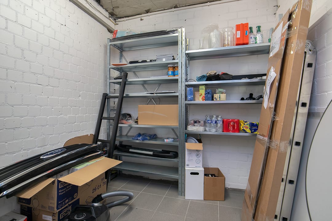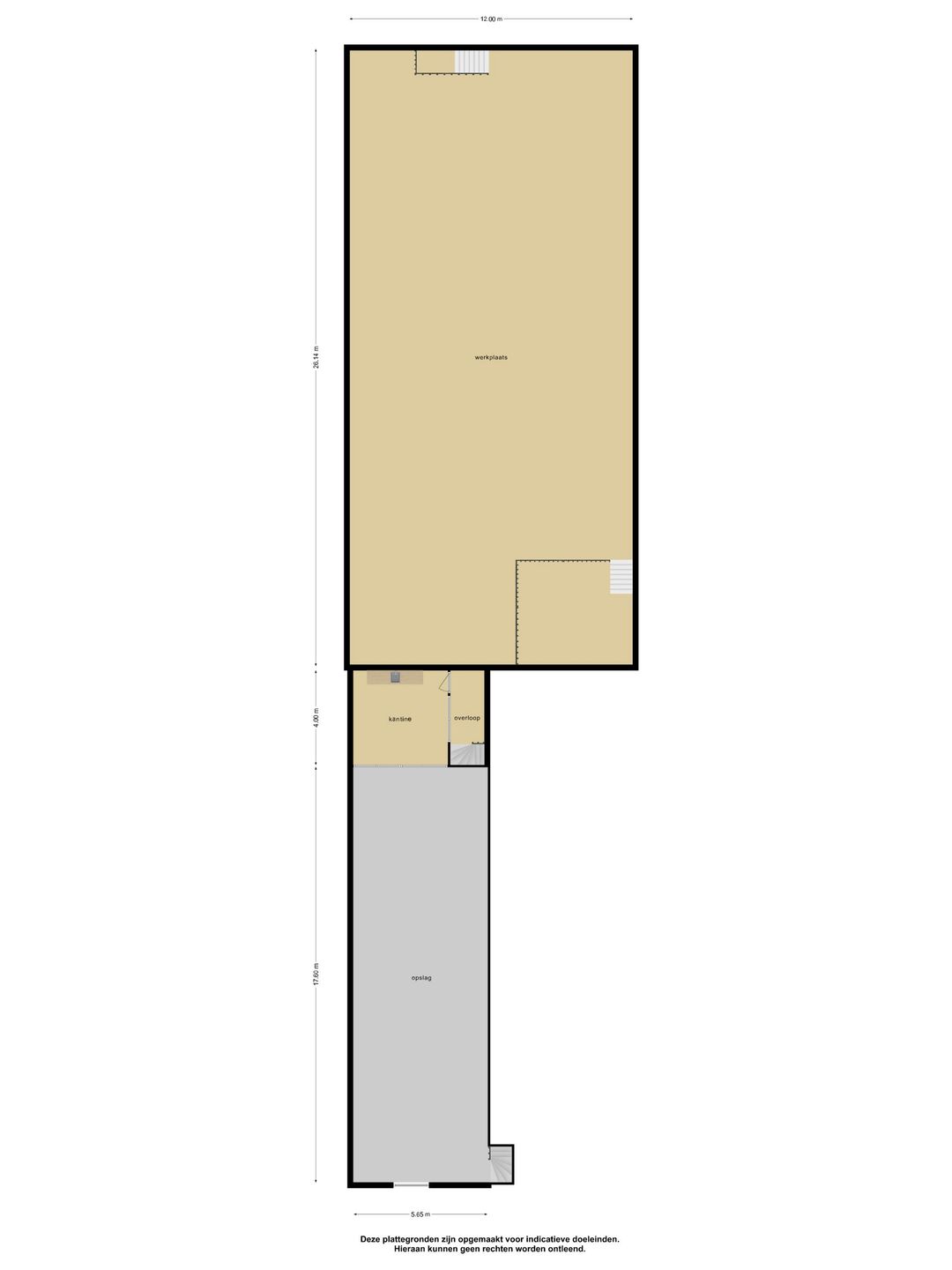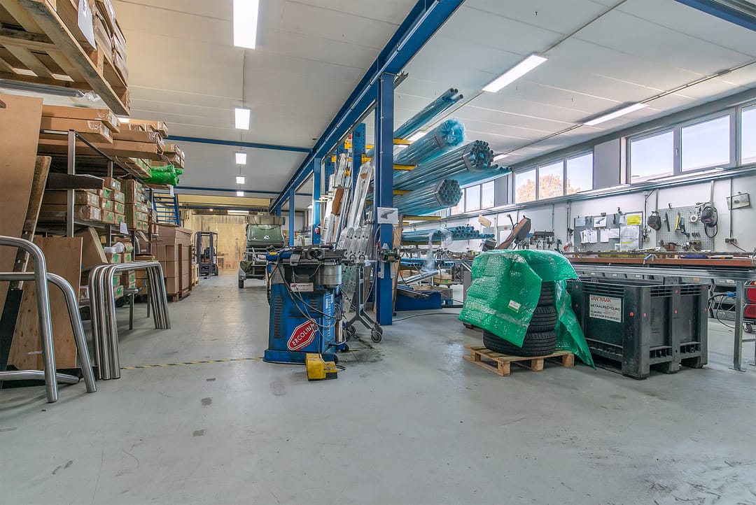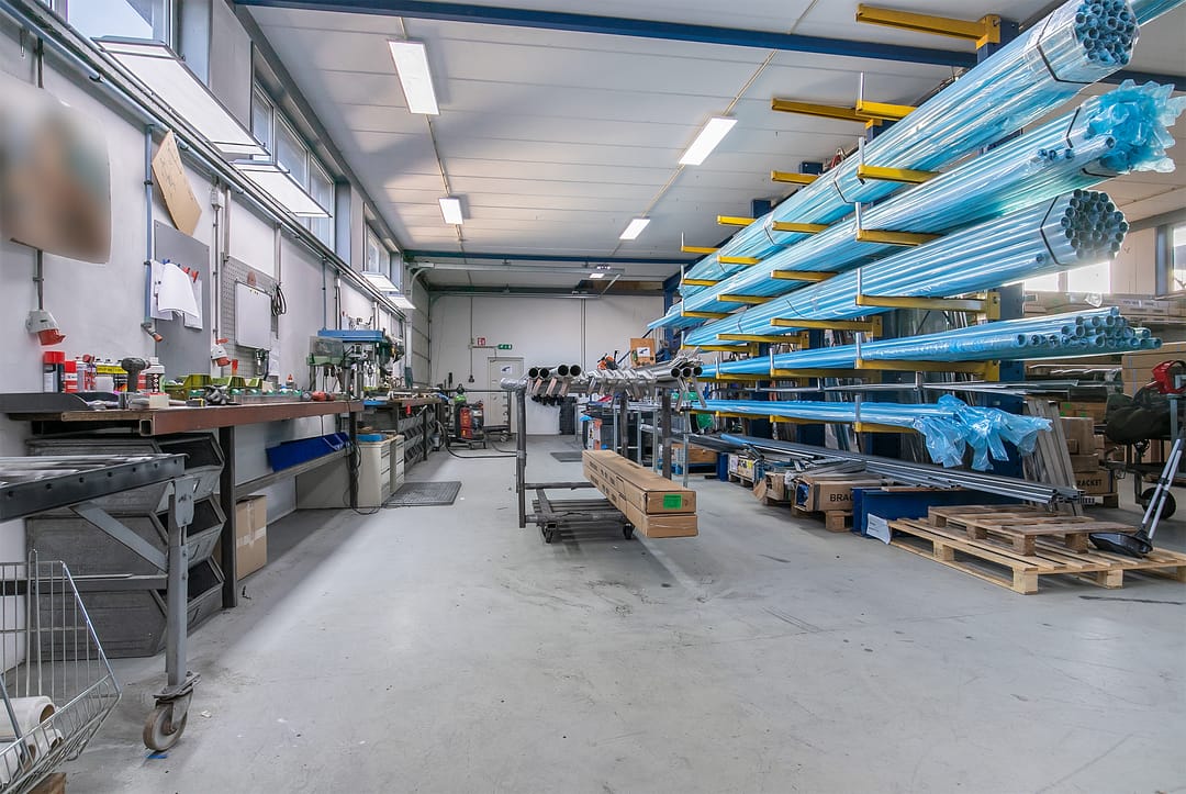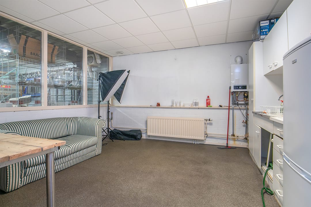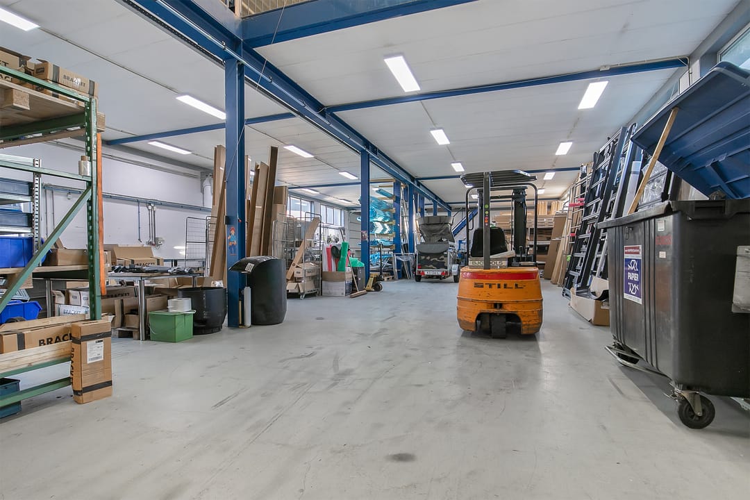 De eerste verdieping is ingericht als functionele ondersteunende laag en bestaat uit een kantine, overloop, opslagruimte en een werkplaats. De kantine is voorzien van een nieuw keukenblok. Deze ruimte is geschikt voor pauzes, overlegmomenten of informele werkbesprekingen. De opslagruimte biedt extra mogelijkheden voor goederen, archief of materialen, terwijl de werkplaats op deze verdieping extra flexibiliteit geeft voor uiteenlopende werkzaamheden. De verdieping wordt bereikt via twee vaste trappen vanuit de bedrijfsruimte en beschikt over een praktische indeling.