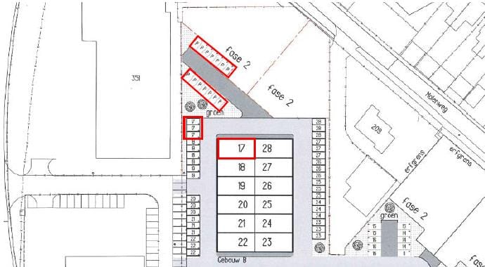 Tot het object behoren 3 vaste parkeerplaatsen op mandelig terrein en 14 separate parkeerplaatsen op eigen terrein. De parkeerplaatsen grenzen praktisch aan het object wat enorme voordelen oplevert. Dit is een unieke mogelijkheid voor bedrijven die een bovengemiddeld aantal parkeerplaatsen nodig hebben.