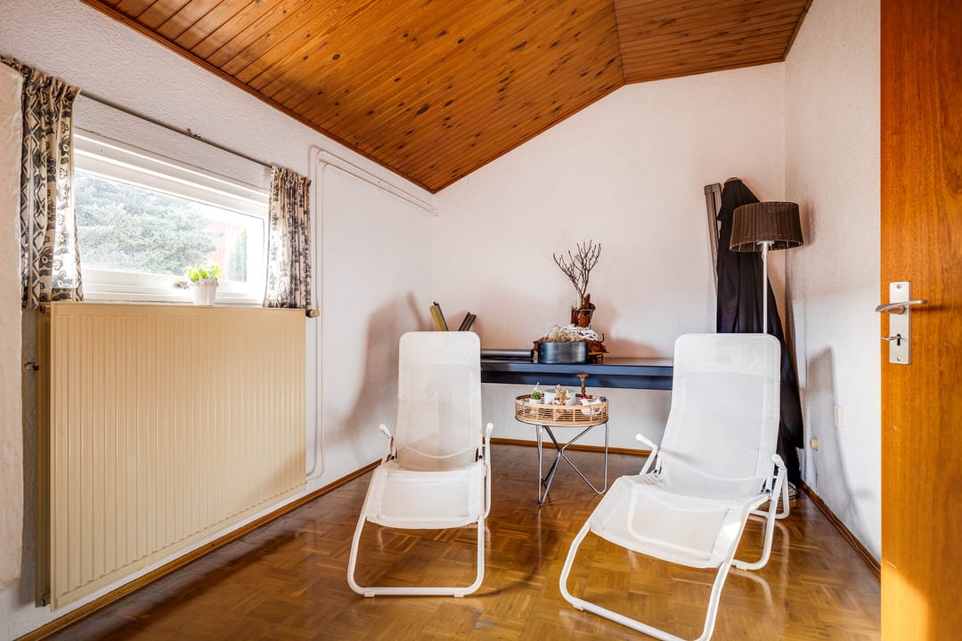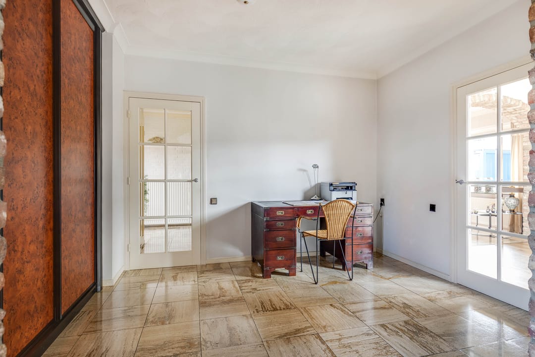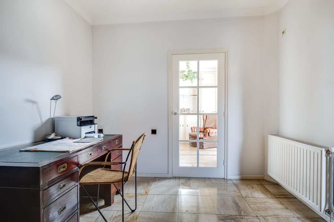 Aansluitend aan de woonkamer is een kantoorruimte ingericht. Dankzij de gunstige ligging en daglichttoetreding is deze ruimte multifunctioneel te gebruiken, bijvoorbeeld als kantoor aan huis, speelkamer of extra zitruimte. Deze ruimte geeft direct toegang tot de keuken.