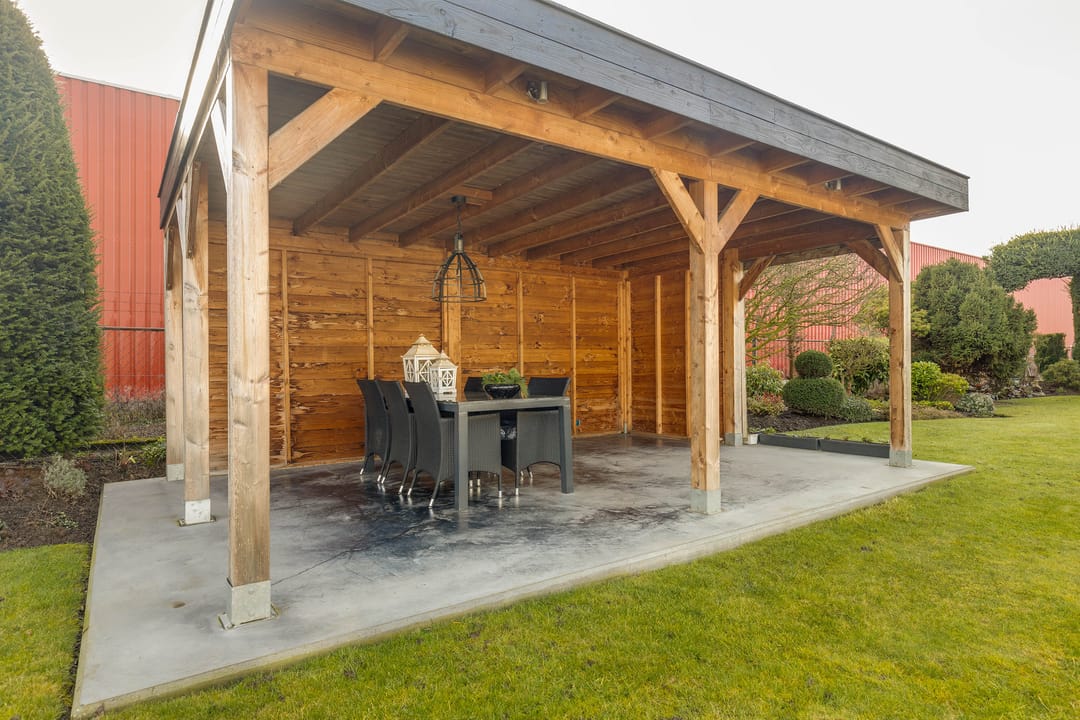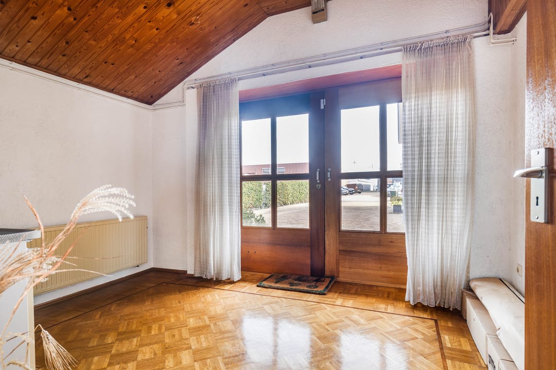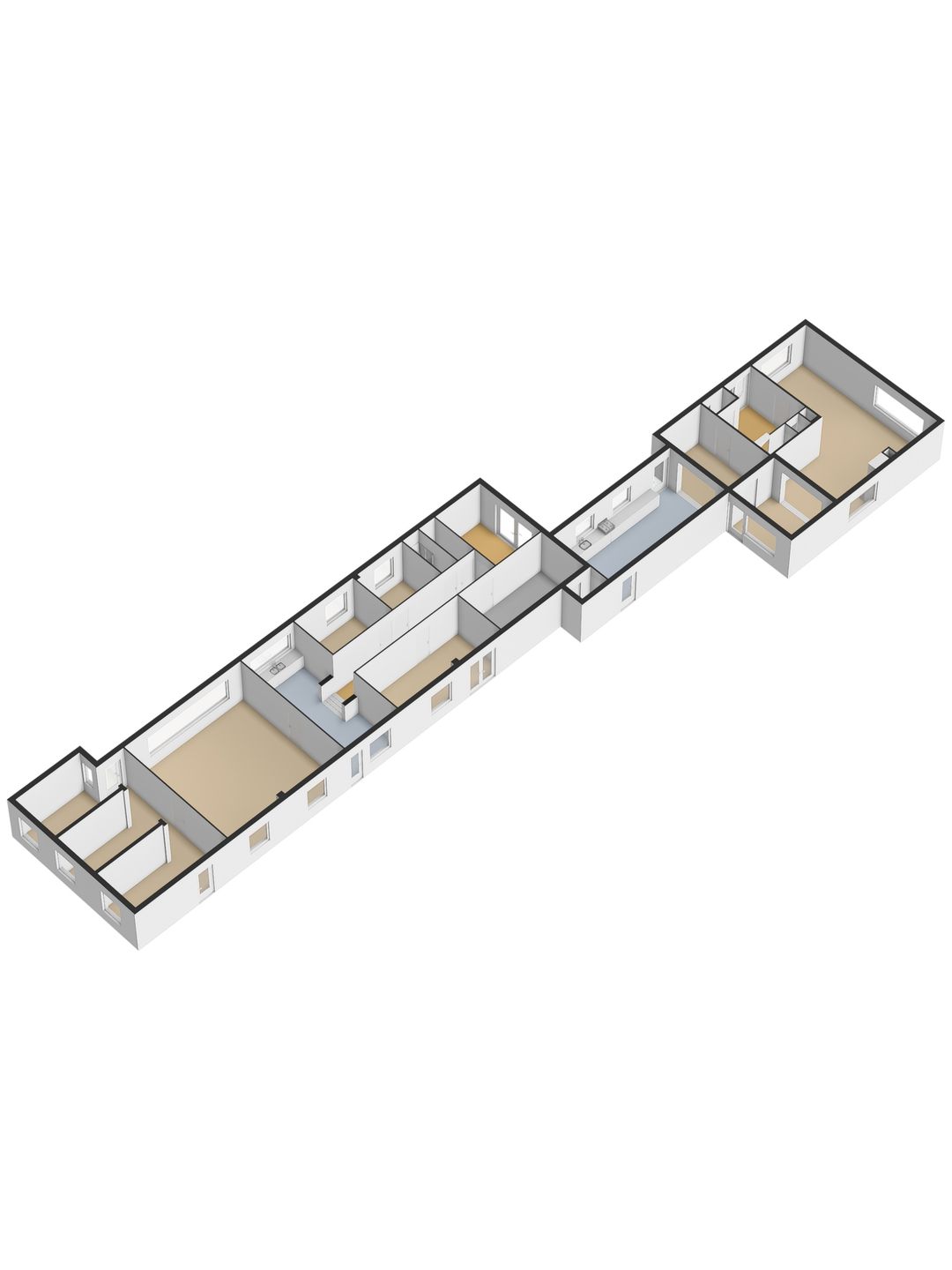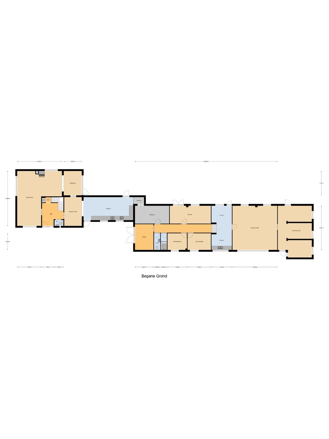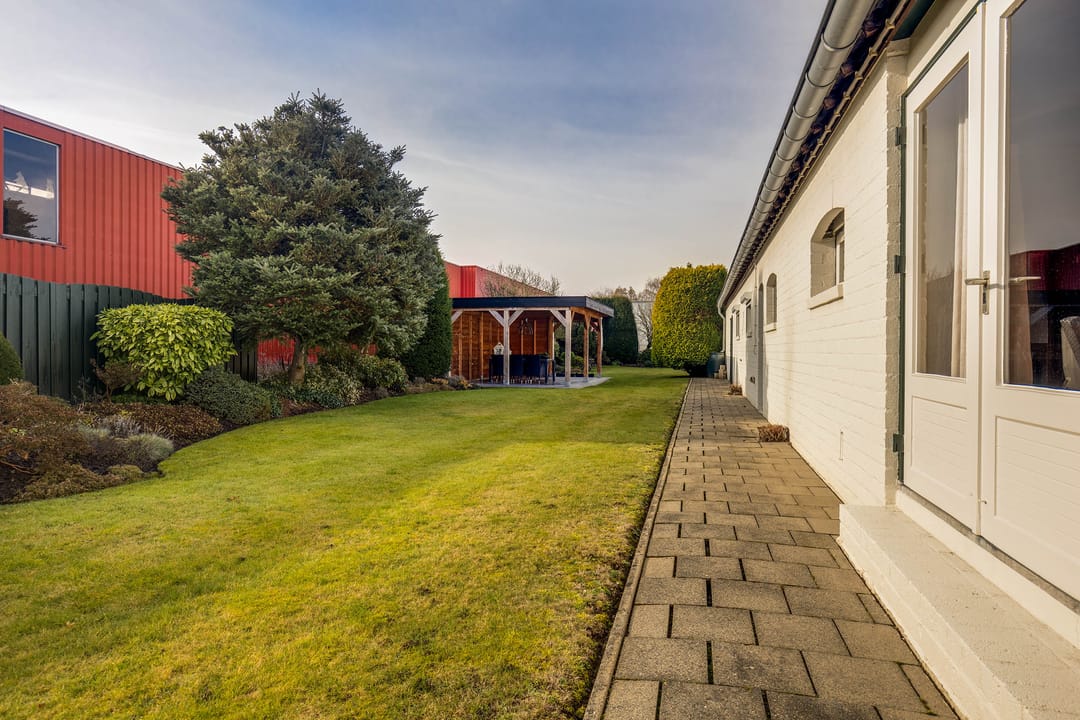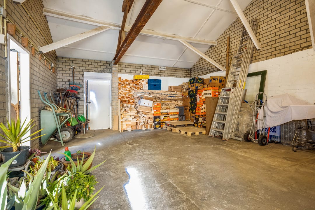 Verbonden aan de keuken is het achtergelegen gedeelte van de woning gesitueerd. Dit is volledig multifunctioneel inzetbaar. Dankzij een separate ingang is dit uitstekend geschikt als bedrijfsruimte aan huis. De functionele indeling in diverse ruimtes biedt mogelijkheden en potentie. De volledige achterbouw beslaat, inclusief ruime garages, ca. 165 m2.