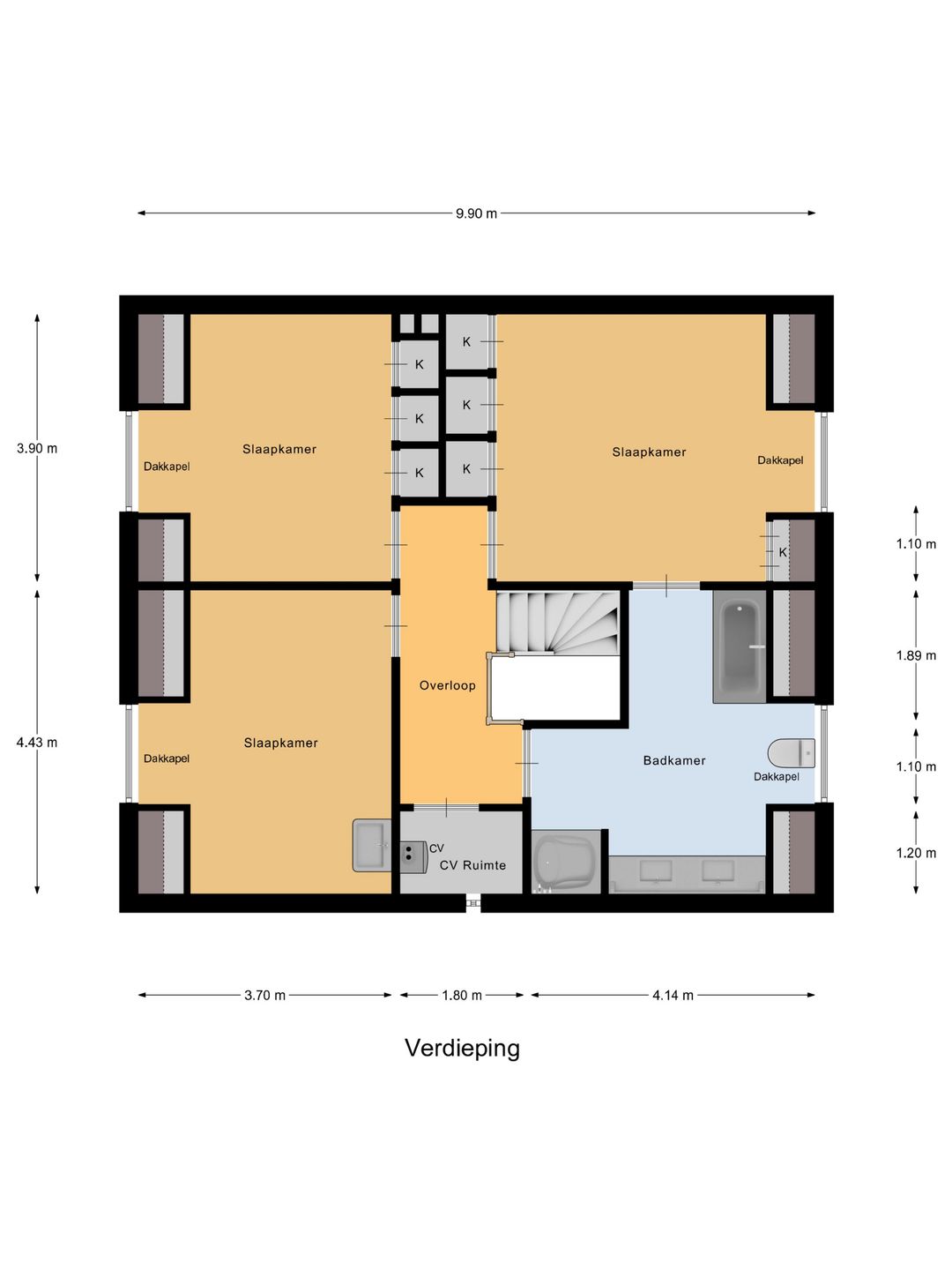 • Drie ruime slaapkamers