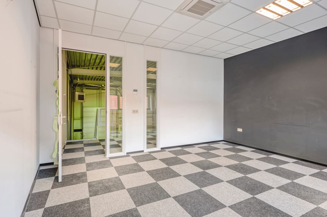 Representatief bedrijfspand bestaande uit ca. 170 m² bedrijfsruimte en ca. 125 m² kantoorruimte. De kantoren beschikken allen over airco, systeemplafond, vloerbekleding en diverse data/stroompunten. Op de begane grond bevindt zich een kantoortuin met uitzicht op de loods. Aansluitend zijn 2 toiletten en de keuken gesitueerd. De (vierkante) bedrijfsruimte beschikt over een vrije hoogte van 6,80 meter en heeft aan de achterzijde een overheadpoort (4,0m breed x 4,50m hoog). In de bedrijfsruimte is de trap naar de eerste verdieping gevestigd. Hier zijn de laatste 2 kantoorruimtes (34 m² en 24 m²) terug te vinden. Het object beschikt over 3 parkeerplaatsen aan de achterzijde. Aan de straat mag met de blauwe kaart geparkeerd worden.