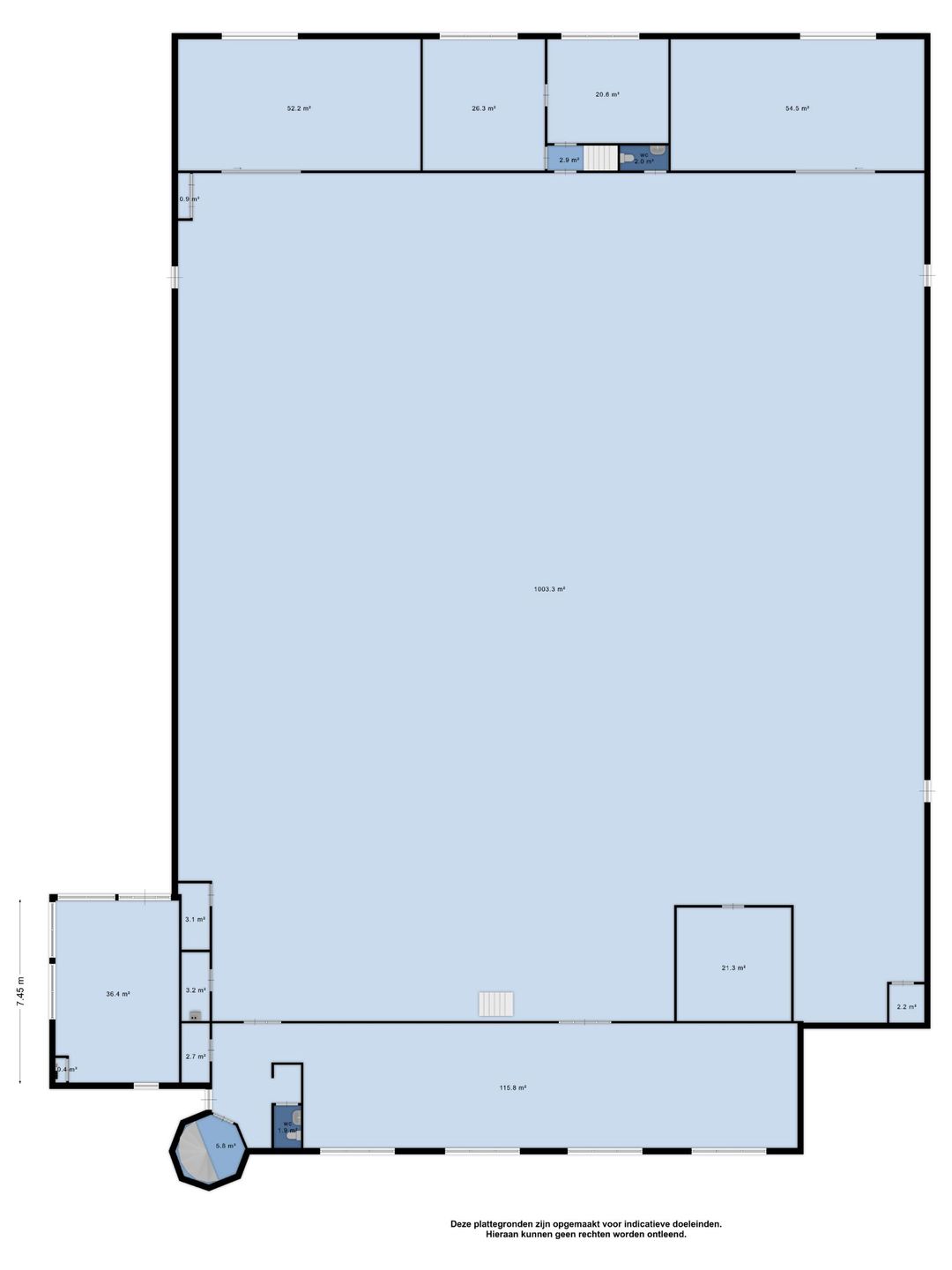 - Bg circa 1200 m², vrije hoogte 6,50 m¹
