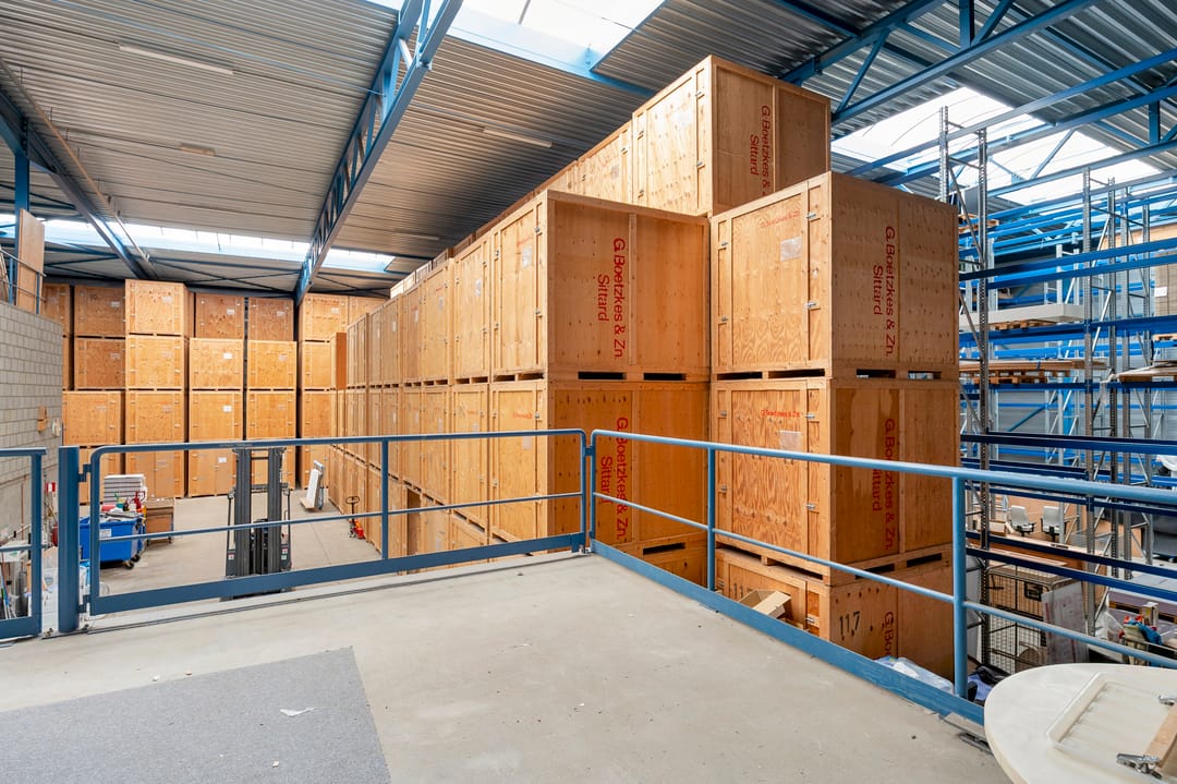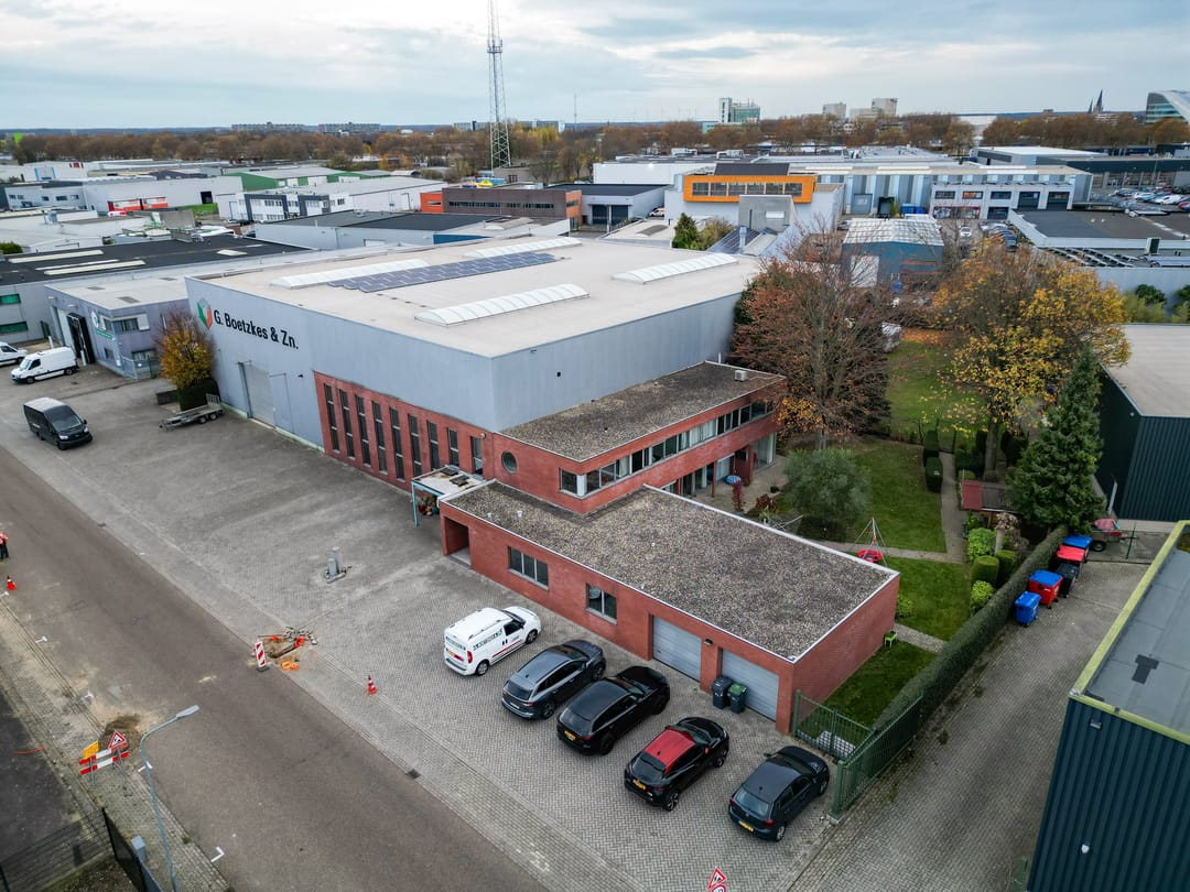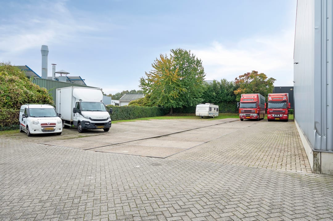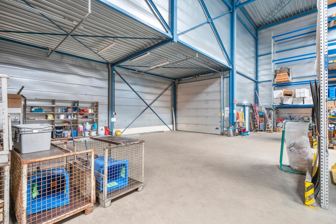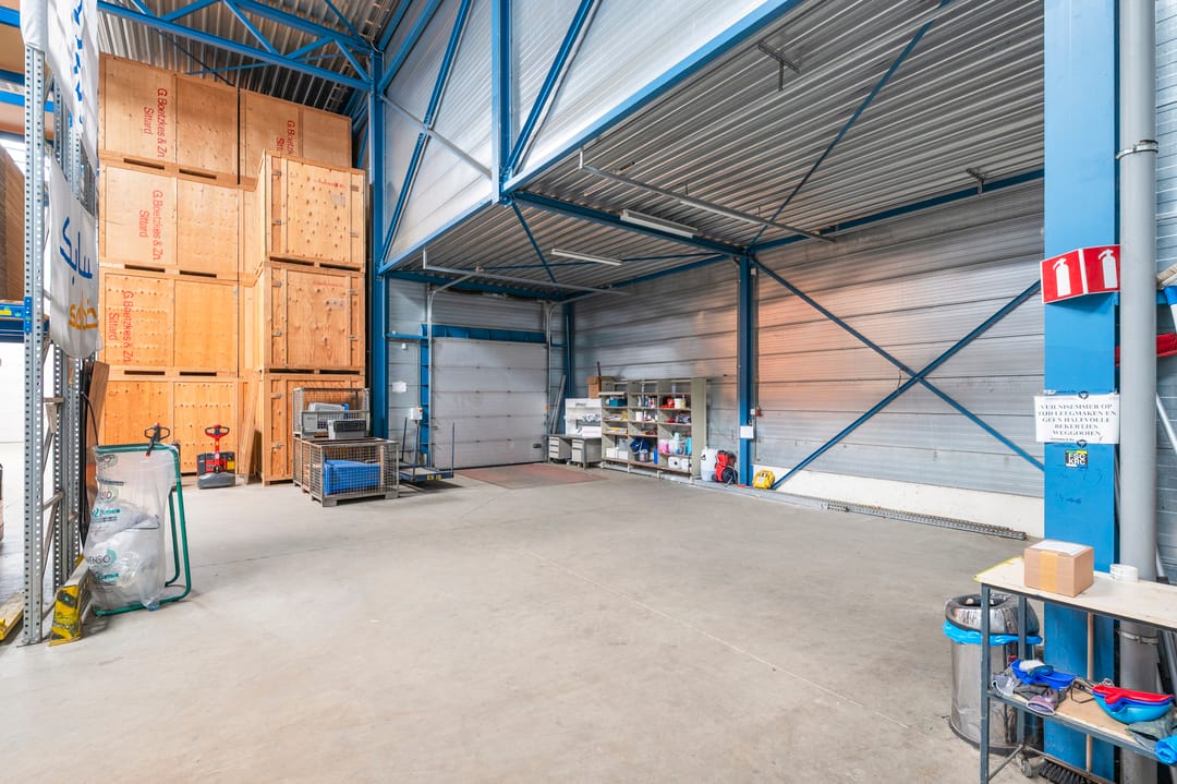 De bedrijfsruimte ligt aansluitend aan de woning en heeft een oppervlakte van ca. 1.270 m². De bedrijfsruimte is opgebouwd uit twee lagen. De begane grond is verdeeld in een entree met ontvangstbalie, kantoorruimte en kantine. De loods met een hoogte van 8,5 meter is voorzien van een loading dock, een aparte opslagruimte met kantelpoort en een gedeeltelijke verdiepingsvloer. Verder beschikt de loods over 3 overheadpoorten van resp. 4 x 4 m, 4,5 x 4,5 m en 3 x 3 m, vier lichtstraten en is er LED-verlichting aanwezig. De elektriciteitsaansluiting bedraagt 3x63A. Daarnaast zijn er 35 zonnepanelen geïnstalleerd.