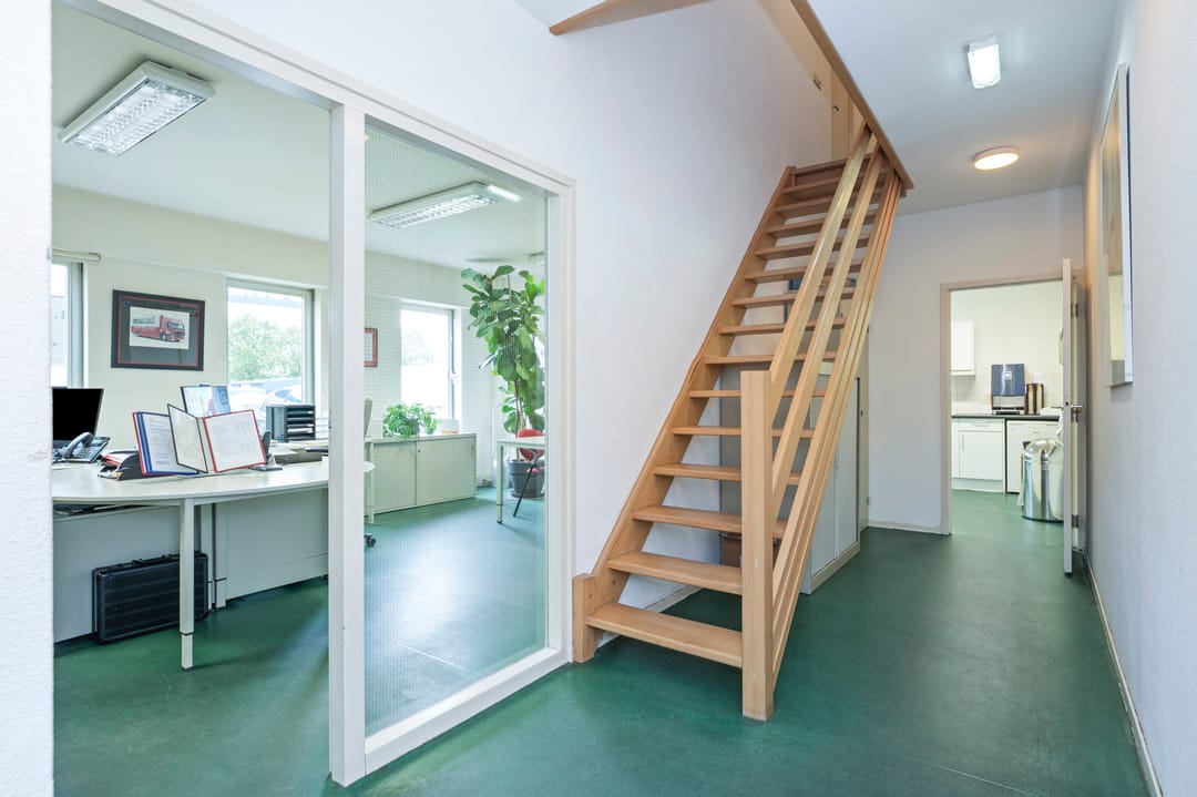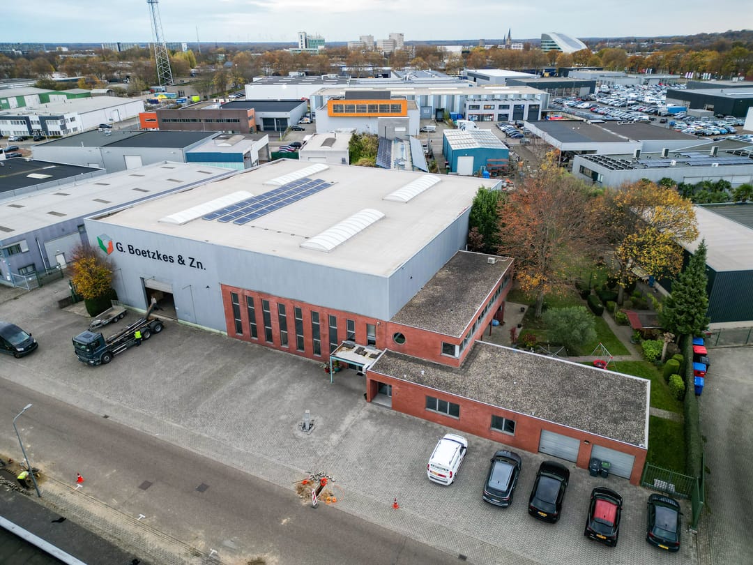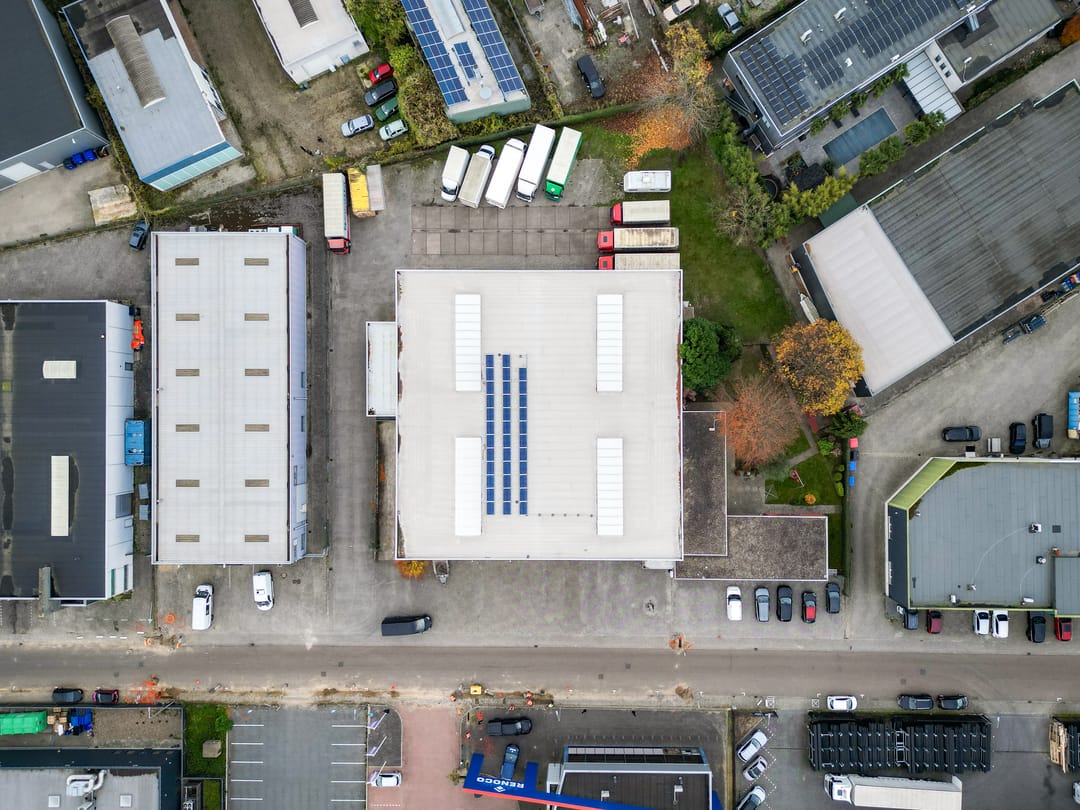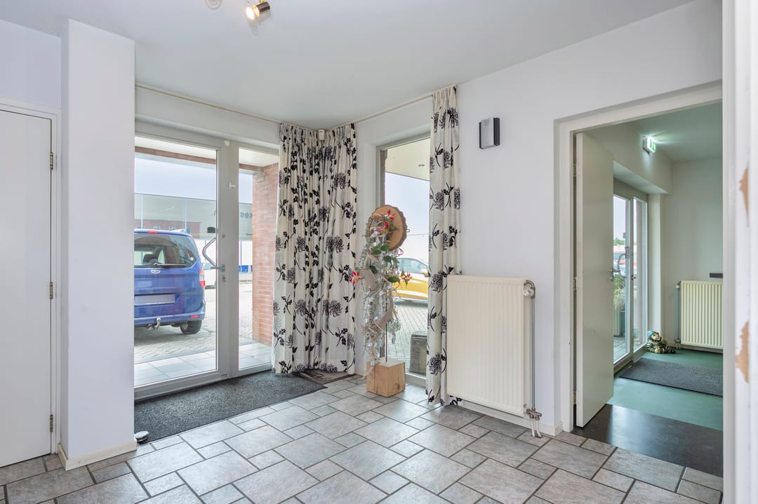 De bedrijfsruimte ligt aansluitend aan de woning en heeft een oppervlakte van ca. 1.270 m². De bedrijfsruimte is opgebouwd uit twee lagen. De begane grond is verdeeld in een entree met ontvangstbalie, kantoorruimte en kantine. De loods met een hoogte van 8,5 meter is voorzien van een loading dock, een aparte opslagruimte met kantelpoort en een gedeeltelijke verdiepingsvloer. Verder beschikt de loods over 3 overheadpoorten van resp. 4 x 4 m, 4,5 x 4,5 m en 3 x 3 m, vier lichtstraten en is er LED-verlichting aanwezig. De elektriciteitsaansluiting bedraagt 3x63A. Daarnaast zijn er 35 zonnepanelen geïnstalleerd.