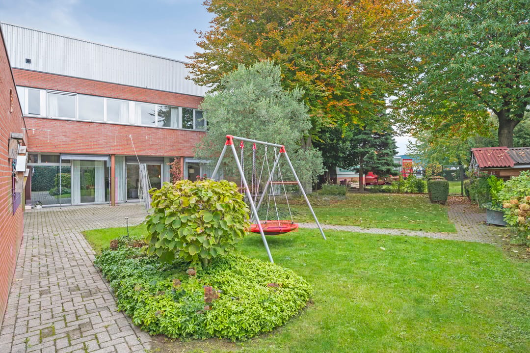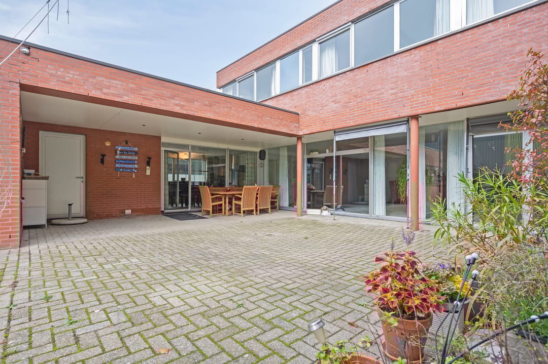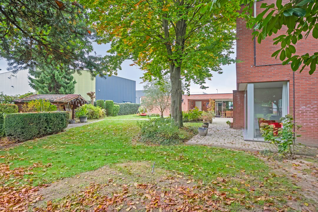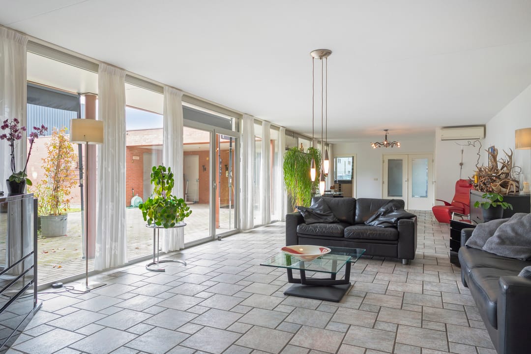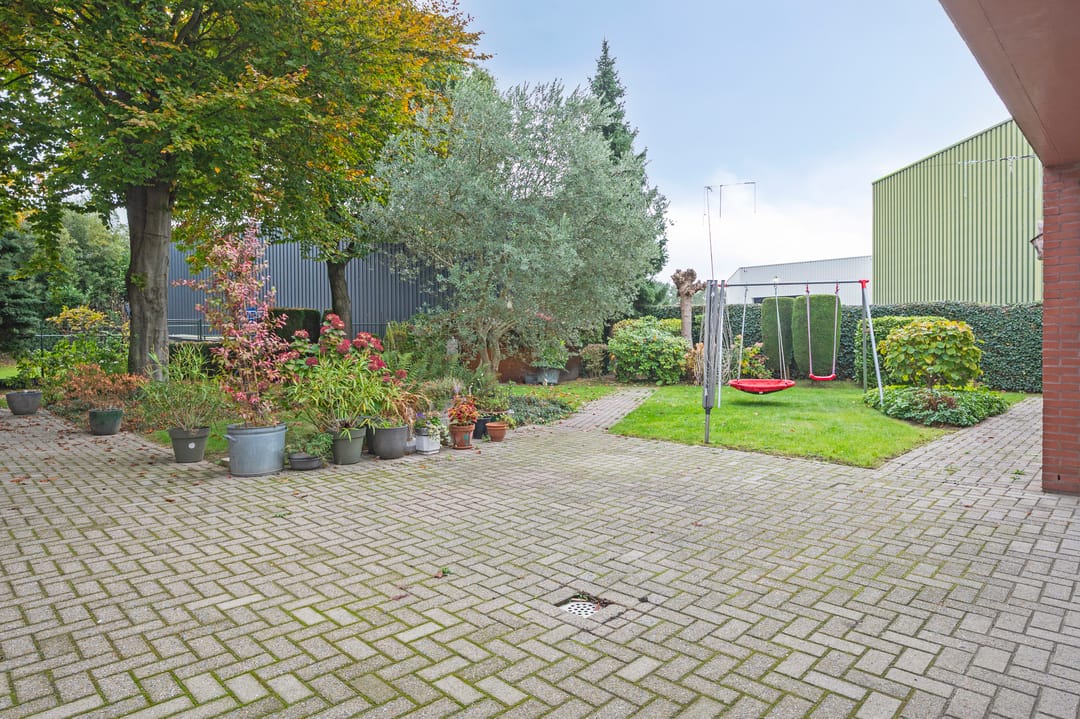 Aan de voorzijde van het pand bevindt zich de zeer ruime bedrijfswoning (ca. 300 m²) welke van alle gemakken is voorzien. Zo is de woning voorzien van vloerverwarming in het woongedeelte en airconditioning in de woon- en hoofdslaapkamer. Er zijn vier slaapkamers en twee badkamers gesitueerd op de verdieping. Tevens is er een mogelijkheid om een slaapkamer en badkamer op de begane grond te realiseren. Via de bijkeuken is er toegang tot de dubbele garage met automatische sectionaalpoort. De ruime tuin met terrasoverkapping biedt optimale privacy.