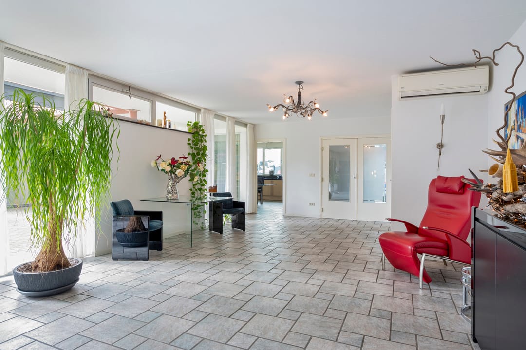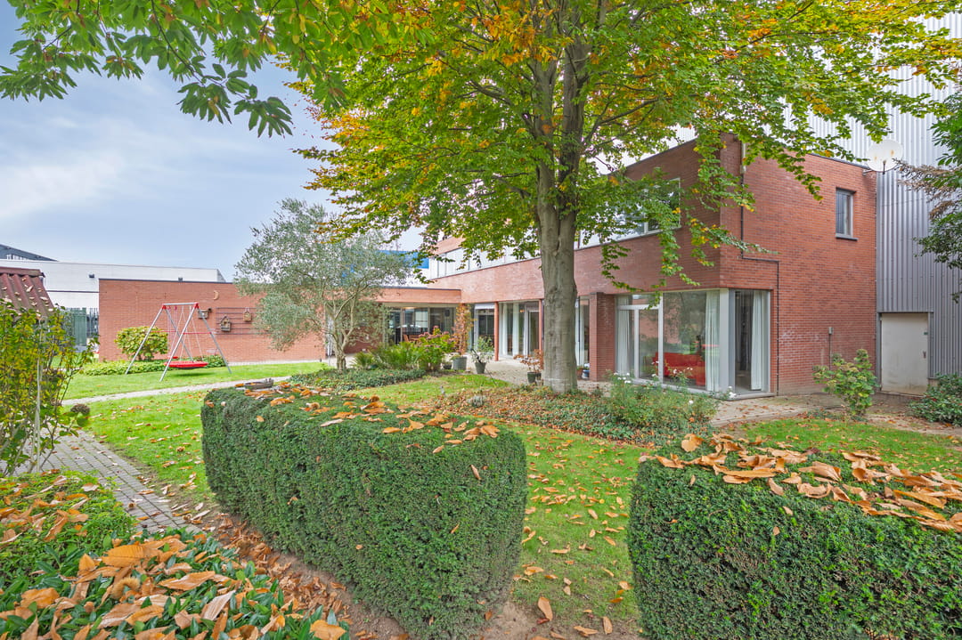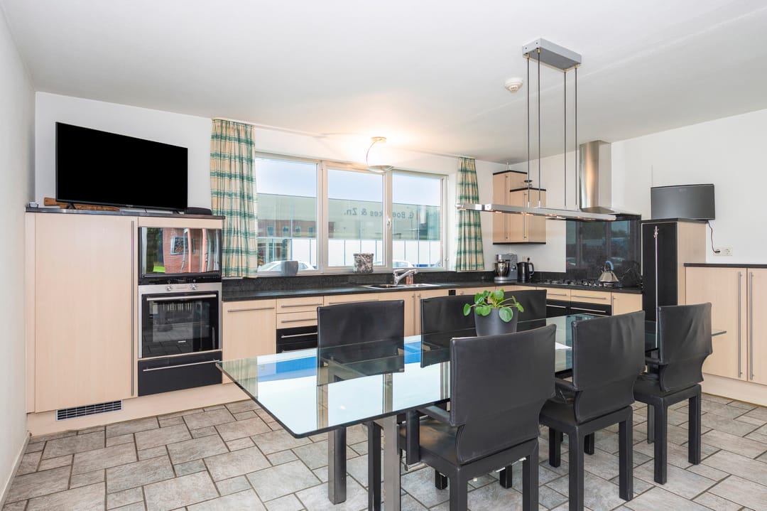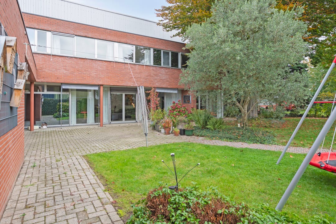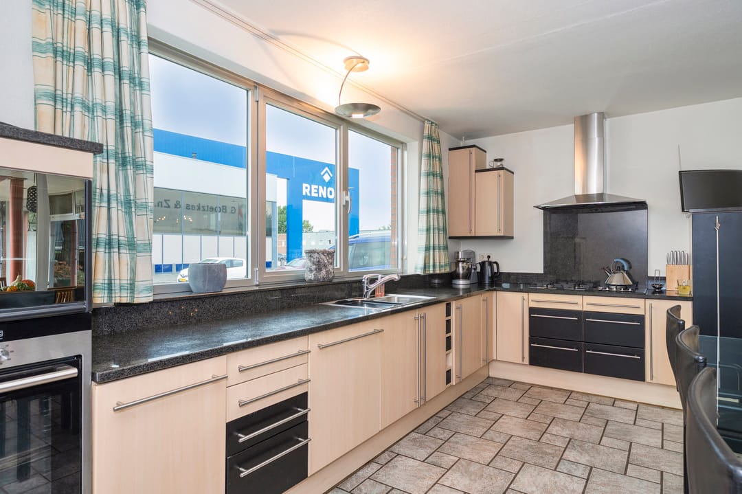 Aan de voorzijde van het pand bevindt zich de zeer ruime bedrijfswoning (ca. 300 m²) welke van alle gemakken is voorzien. Zo is de woning voorzien van vloerverwarming in het woongedeelte en airconditioning in de woon- en hoofdslaapkamer. Er zijn vier slaapkamers en twee badkamers gesitueerd op de verdieping. Tevens is er een mogelijkheid om een slaapkamer en badkamer op de begane grond te realiseren. Via de bijkeuken is er toegang tot de dubbele garage met automatische sectionaalpoort. De ruime tuin met terrasoverkapping biedt optimale privacy.
