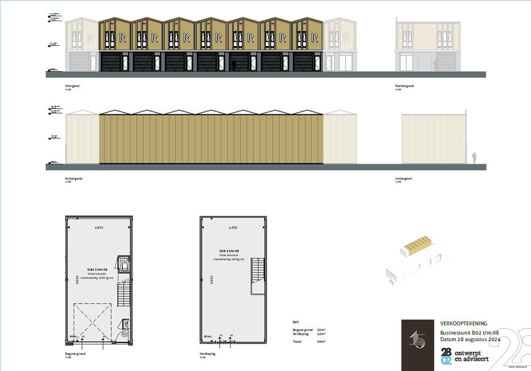 Multifunctionele businessunit in 2 bouwlagen, te weten ca. 50 m² b.v.o. bedrijfsruimte op de begane grond en ca. 49 m² b.v.o. bedrijfsruimte op de 1e verdieping, deel uitmakend van bouwblok B van het hoogwaardige, moderne en duurzame nieuwbouwproject FIFTEEN welke zal worden gerealiseerd op de voormalige Perry Sport locatie.
