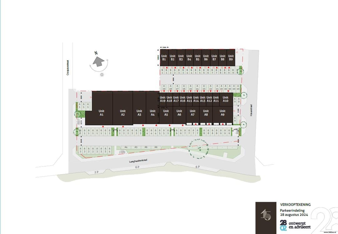 - boven de unit-entreedeur en de overheaddeur zal worden voorzien in een LED-wandarmatuur met schemerschakelaar;