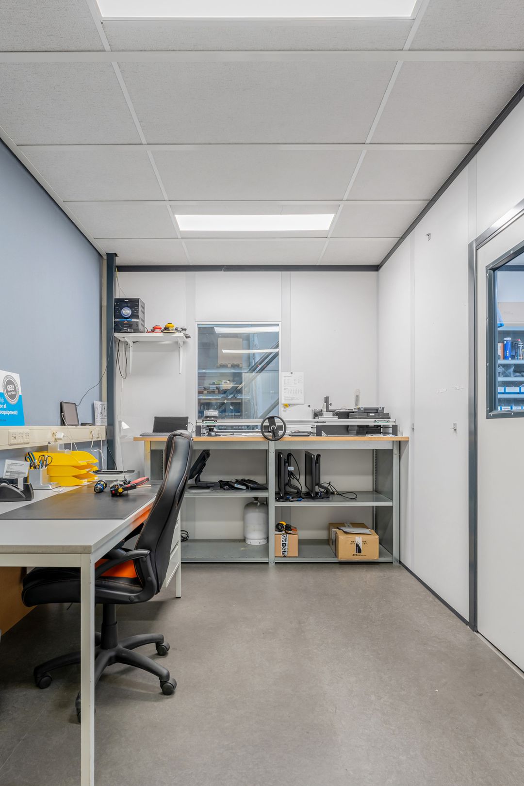 Het kantoorgedeelte, verdeeld over twee lagen, beschikt over een intapklaar opleverniveau met sanitaire voorzieningen op elke bouwlaag. De daarachter gelegen bedrijfsruimte is o.a. voorzien van een onderheide betonvloer (2.500 kg/m²), een vrije hoogte van ca. 6,55 meter en een elektrisch bedienbare overheaddeur.
