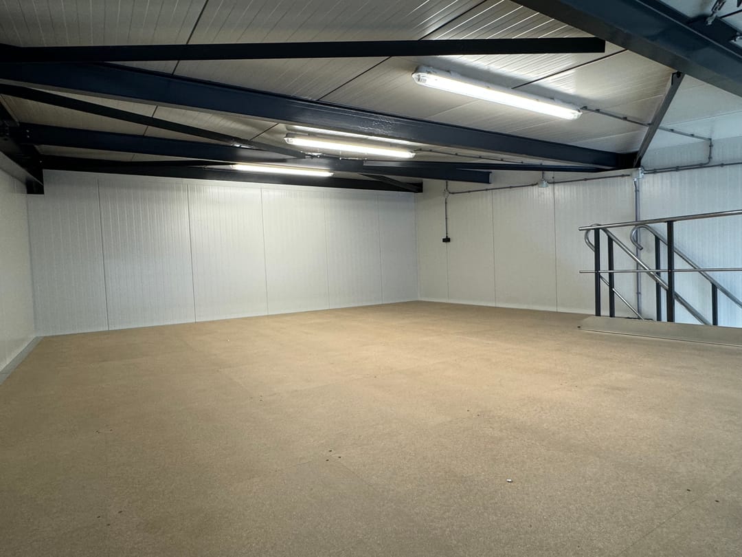 De unit heeft een stramienmaat van ca. 6,3 meter en is ca. 5 meter hoog en onderkant entresolvloer is 2,8 m1. De bedrijfsruimte is voorzien van een elektrische bedienbare overheaddeur, meterkast, riolering en verlichting.