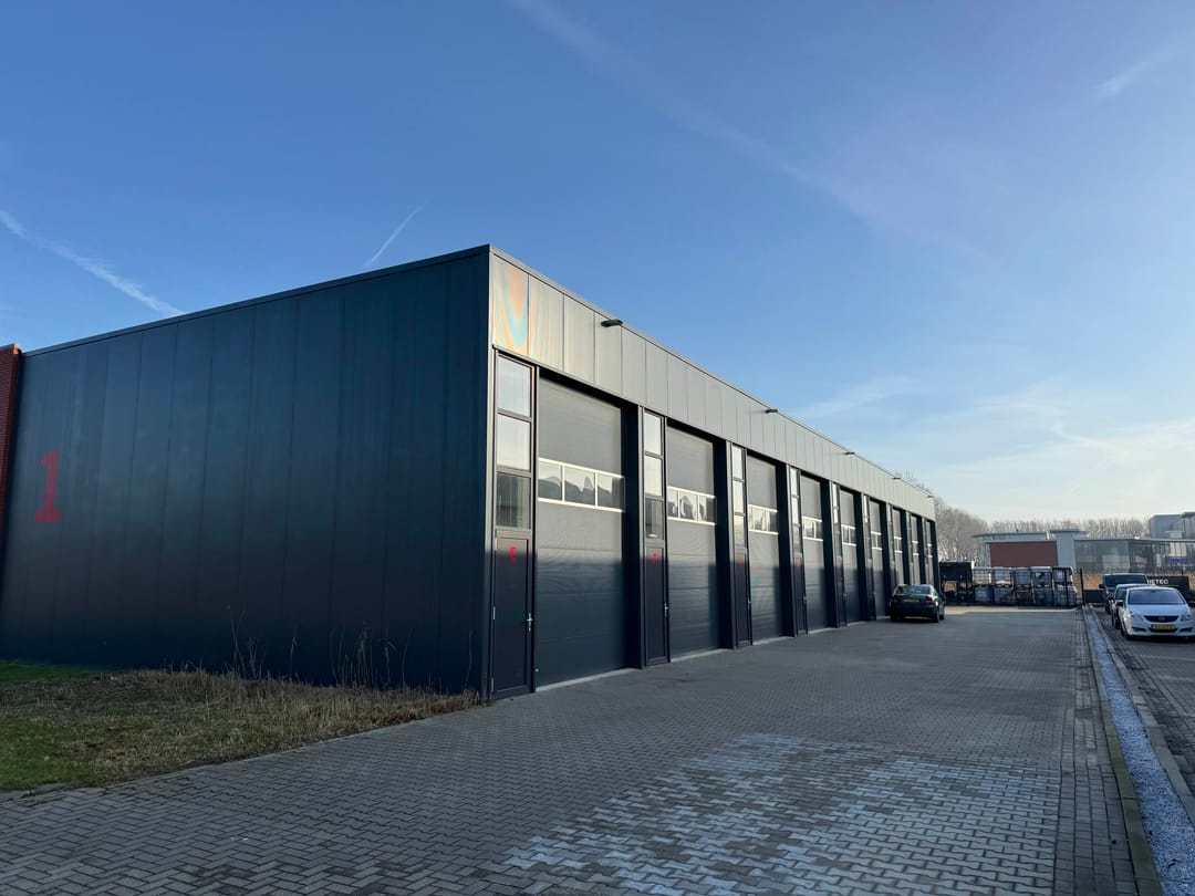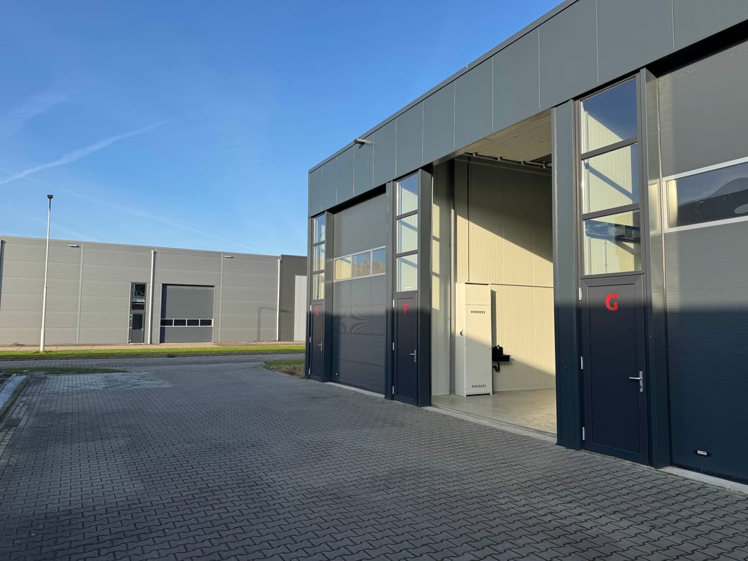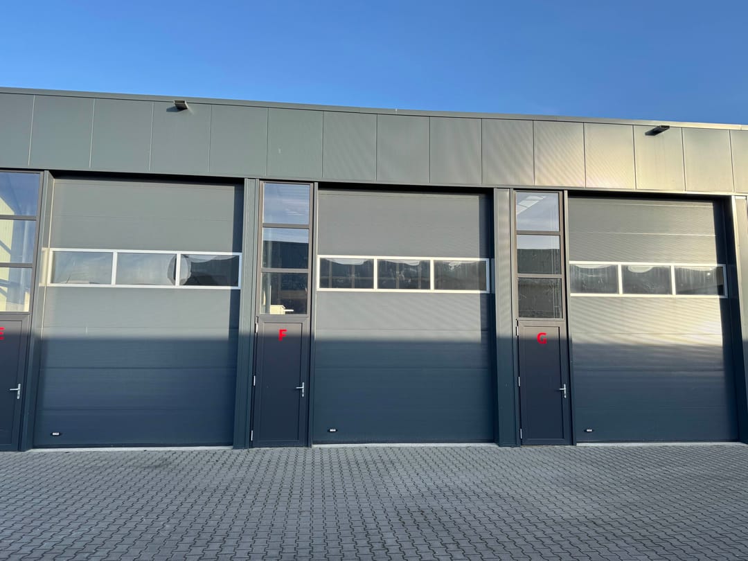 - separate loopdeur naast overheaddeur (ca. 3,5 m1 breed en 5 m1 hoog).