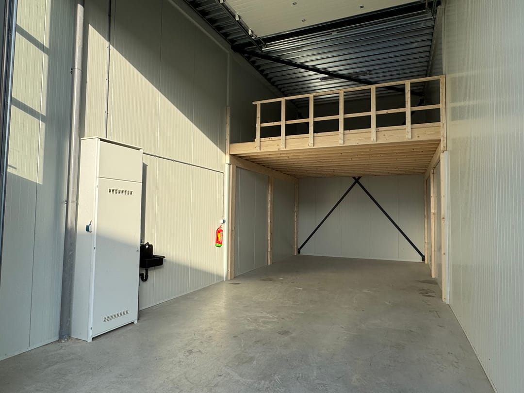 De unit heeft een stramienmaat van 5,00 meter en is ca. 6 meter hoog, voorzien van een eigen entree en een overheaddeur, meterkast, een betonvloer en houten verdiepingsvloer (trap wordt binnenkort geplaatst).