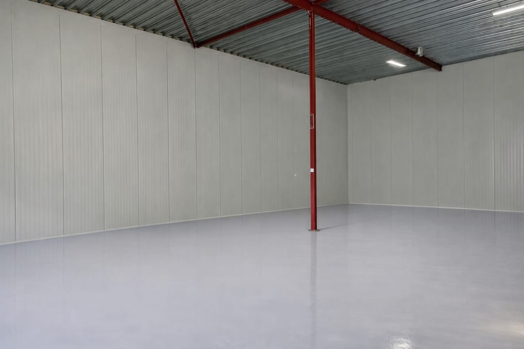 •Monoliet betonvloer, geschikt voor opslag en intern transport