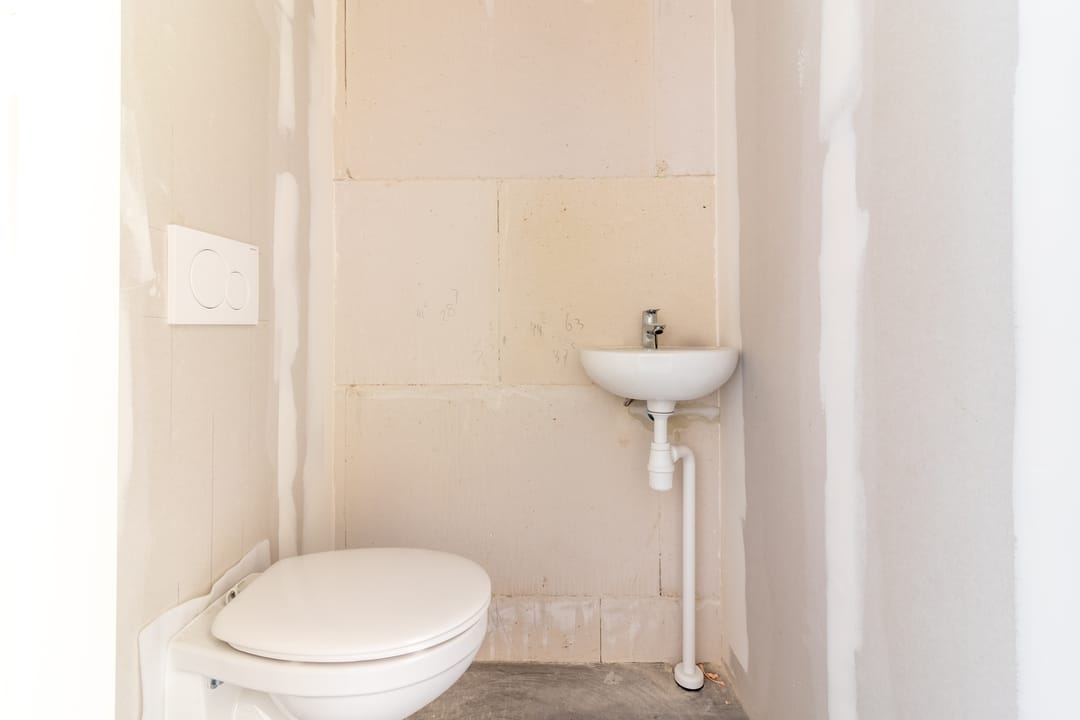 - riool voor toilet en pantry in het werk gestort en afgedopt;