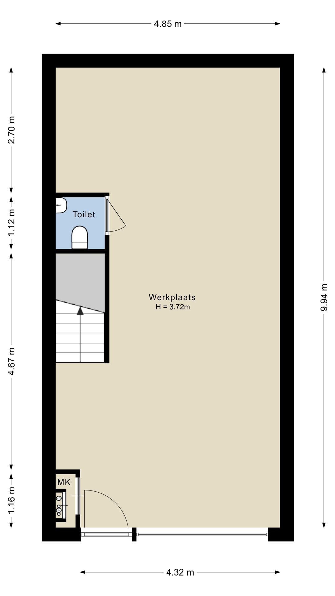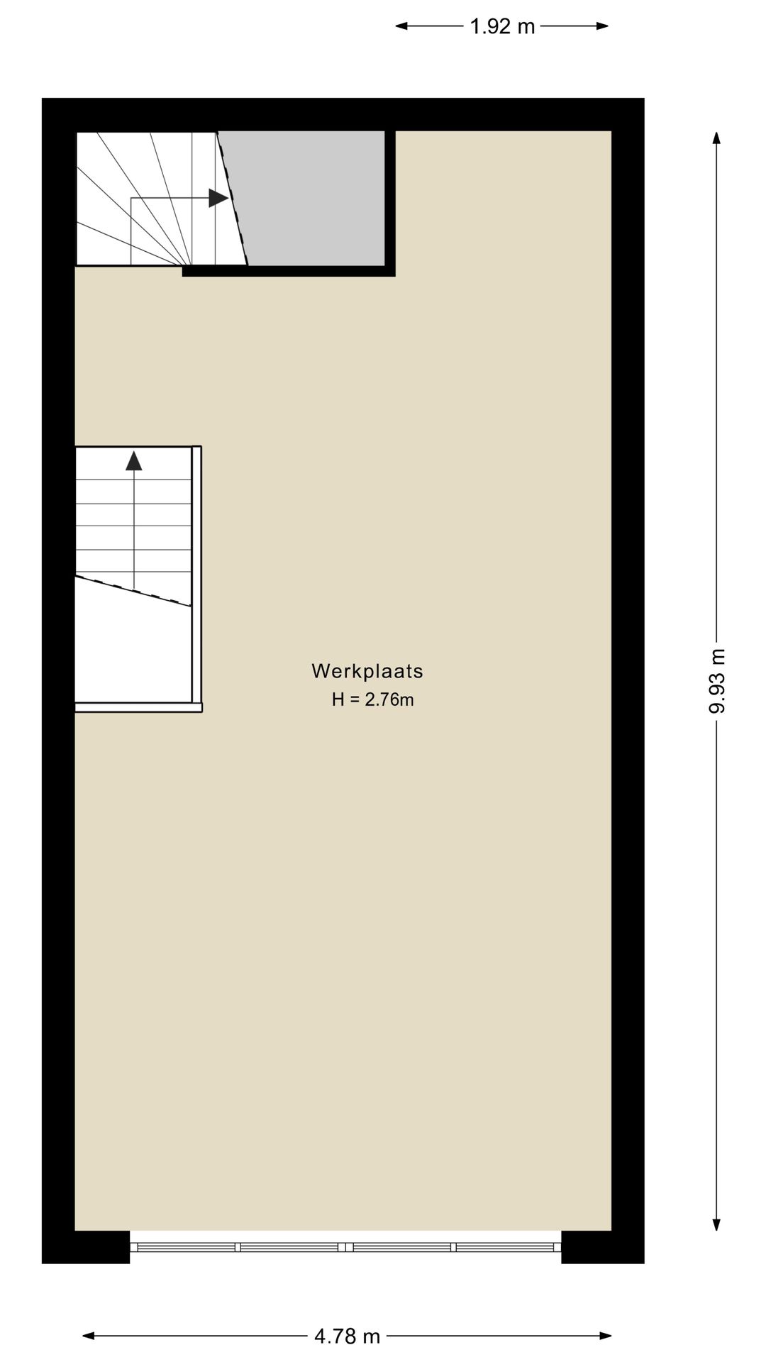 - begane grond 3,7m1 vrije hoogte;