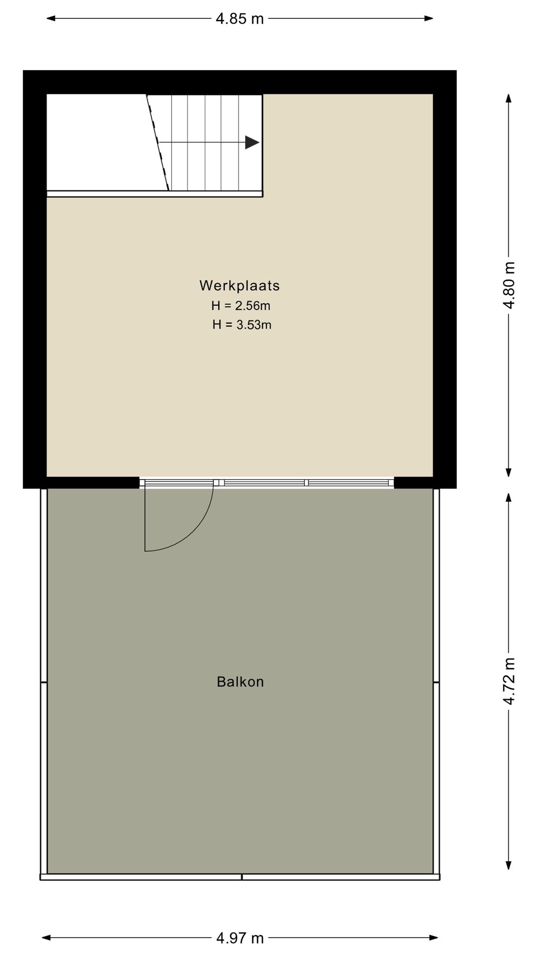 - 2e verdieping 2,8m1 tot 3,5m1 hoogte;