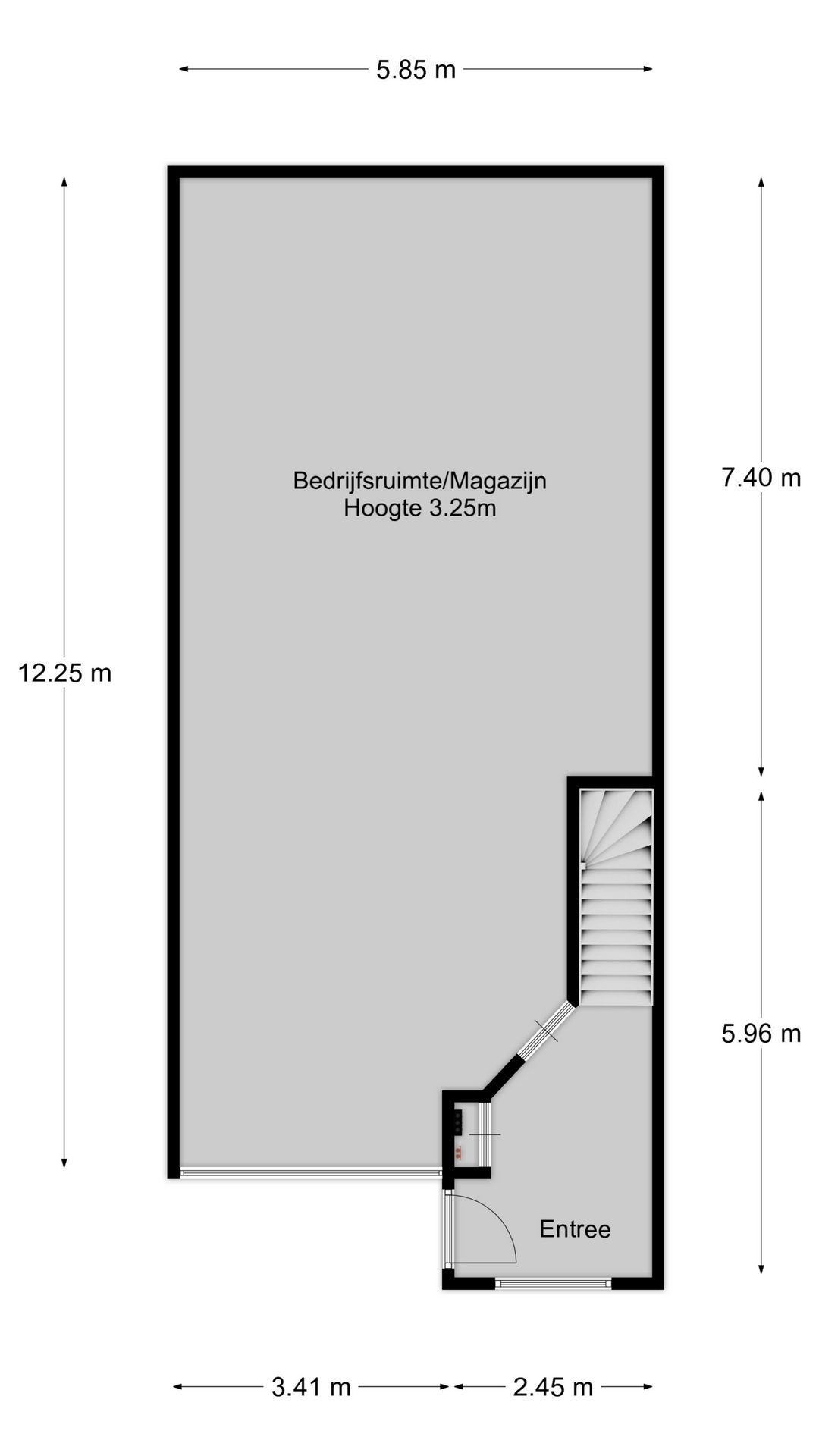 - Begane grond (bedrijfsruimte): ca. 75 m²