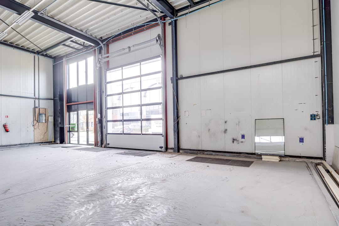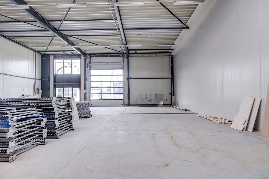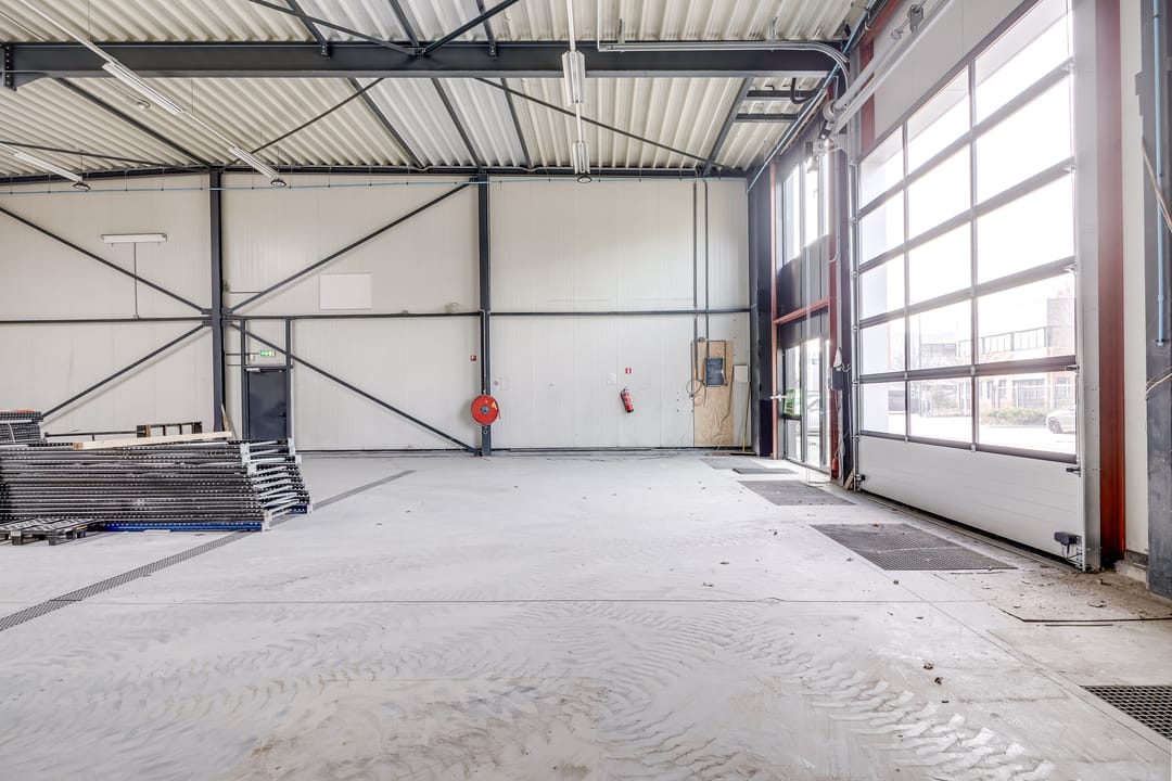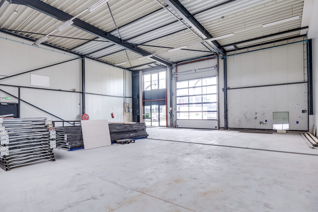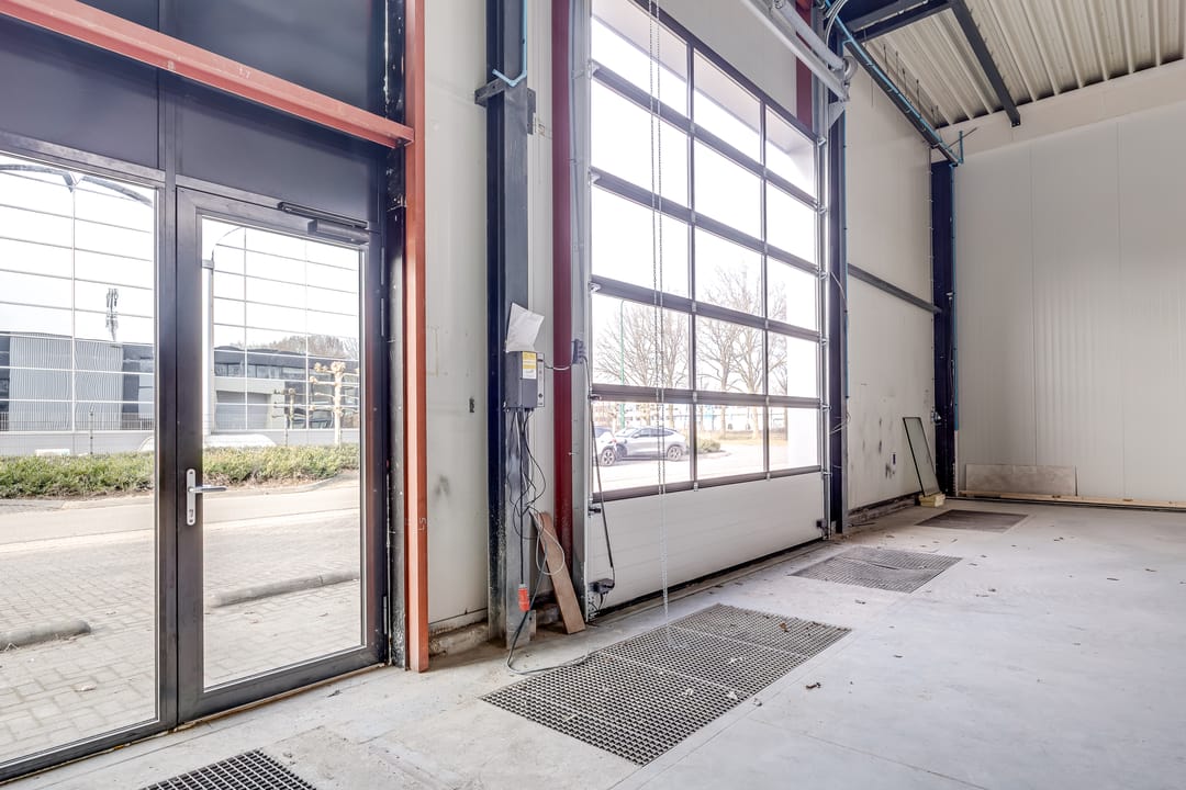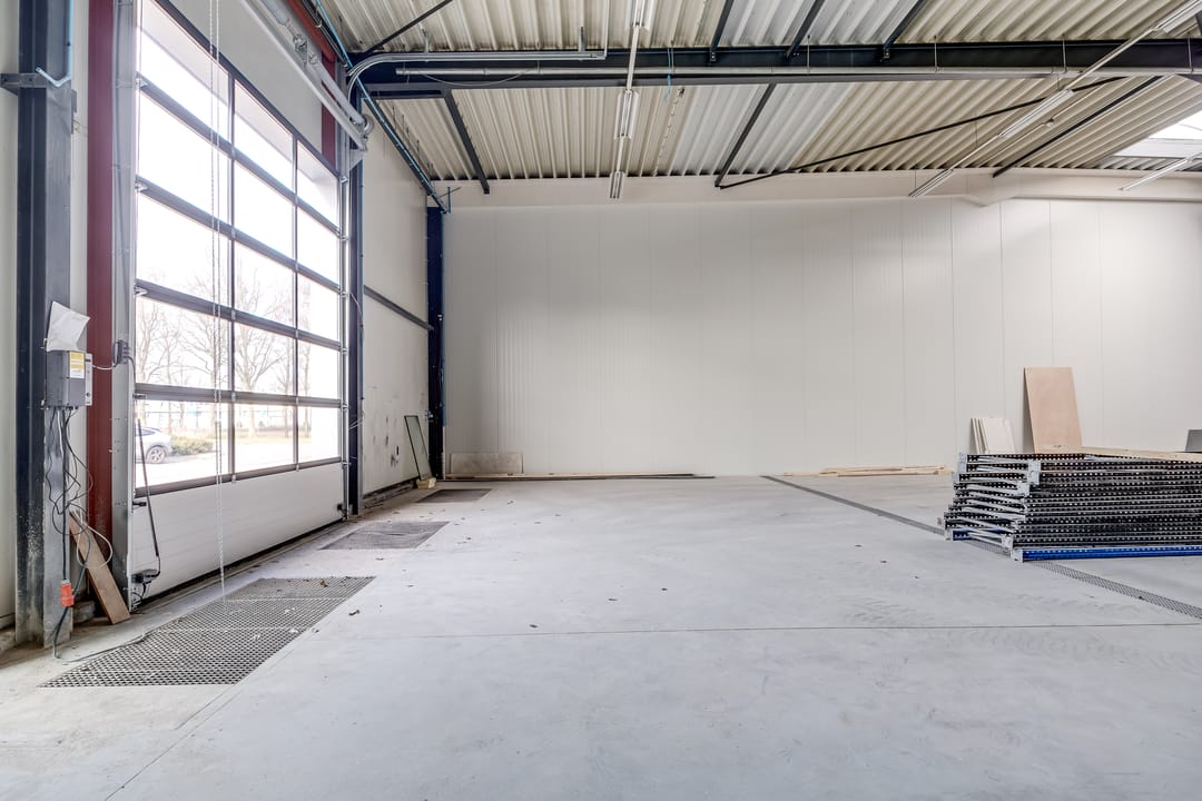 Aan de voorzijde is de bedrijfsruimte voorzien van een moderne glazen pui met loopdeur, dit geeft het gebouw een representatieve entree. Naast de glazen pui is en een elektrisch bedienbare overheaddeur aanwezig van groot formaat. Het bedrijfsgebouw is verder voorzien van een gevlinderde betonvloer, verlichting en elektrapunten. De verdiepingsvloer aan de achterzijde van de bedrijfsruimte is uitgevoerd in beton biedt extra flexibiliteit in gebruik voor opslag of nader te realiseren kantoorruimte.