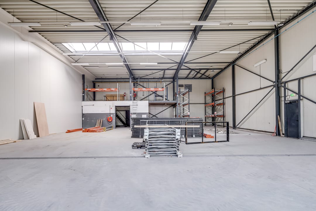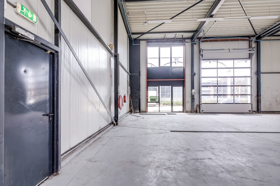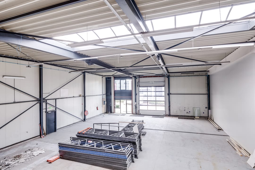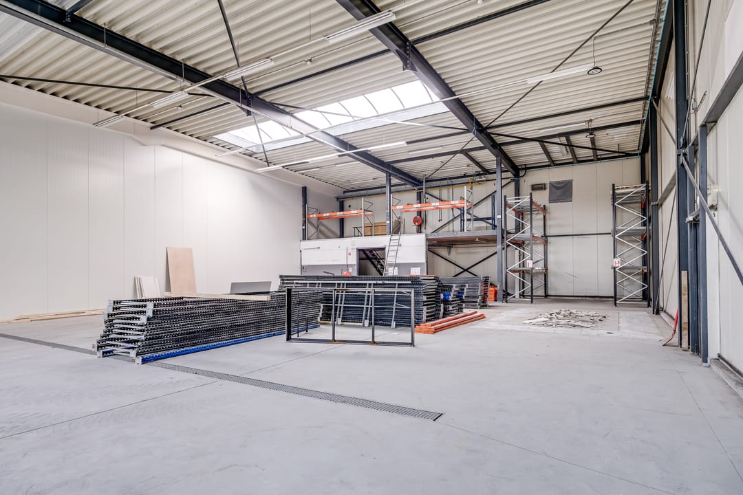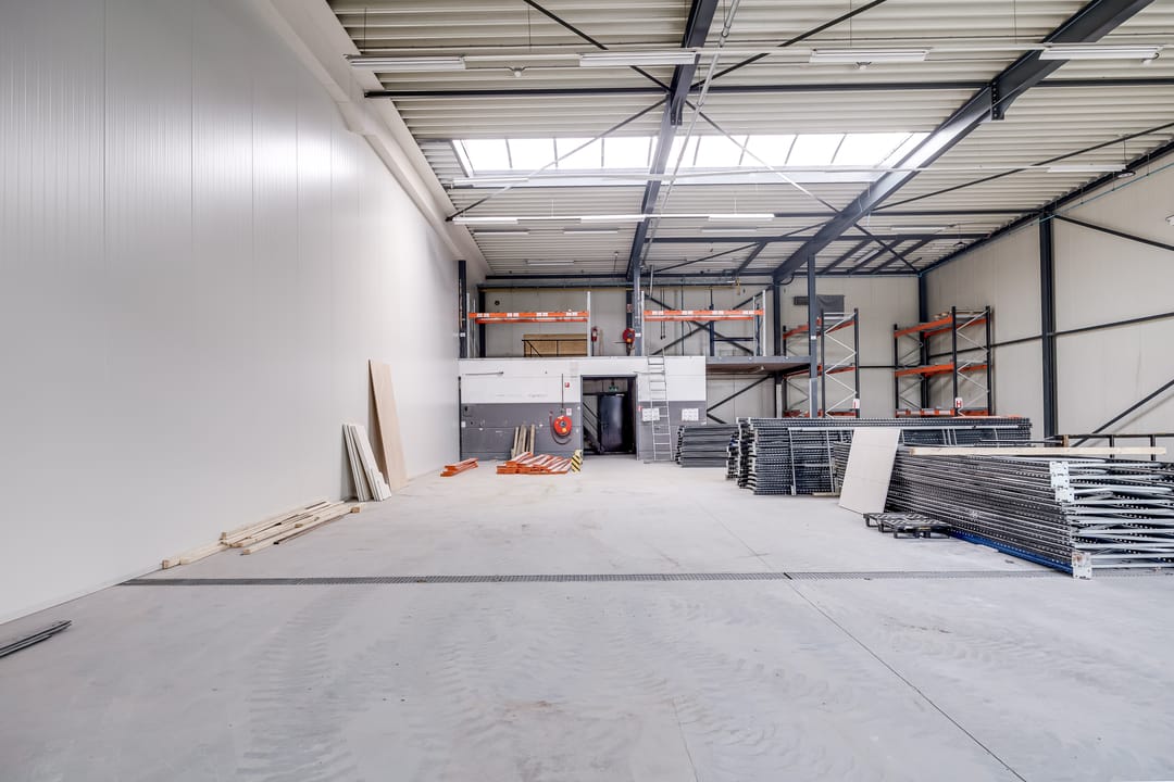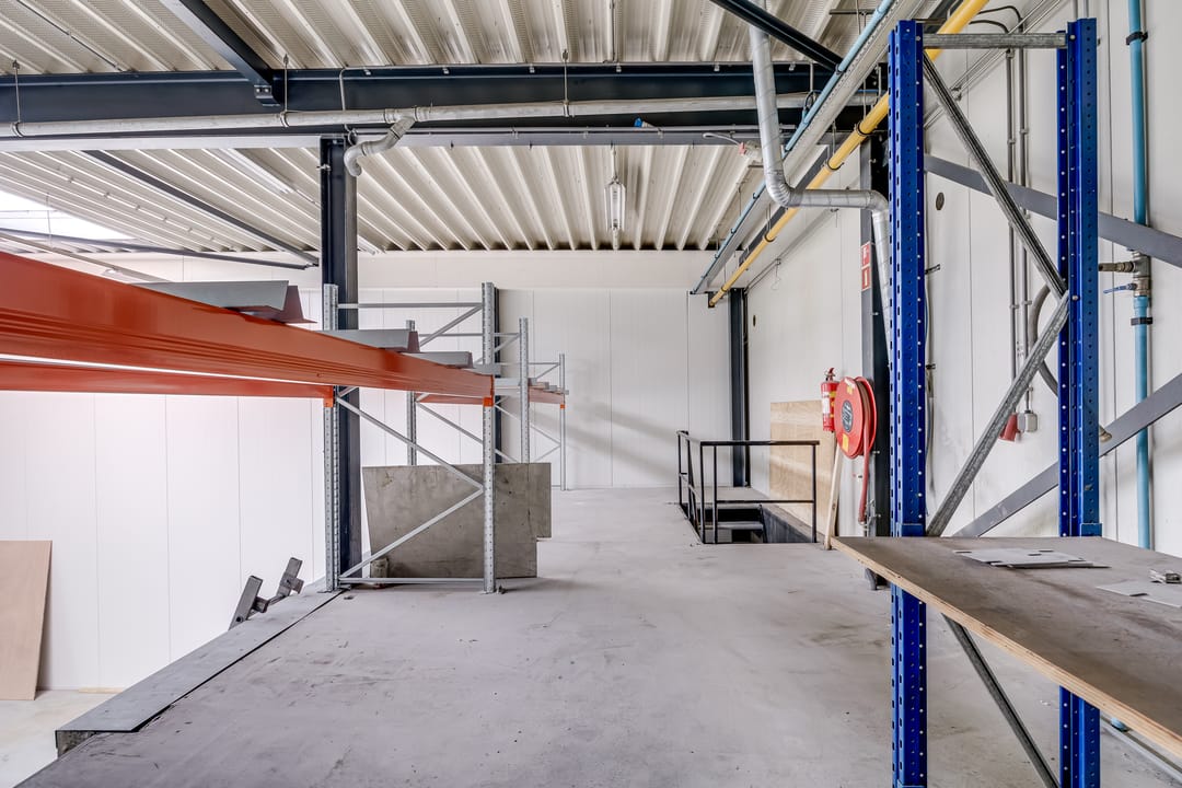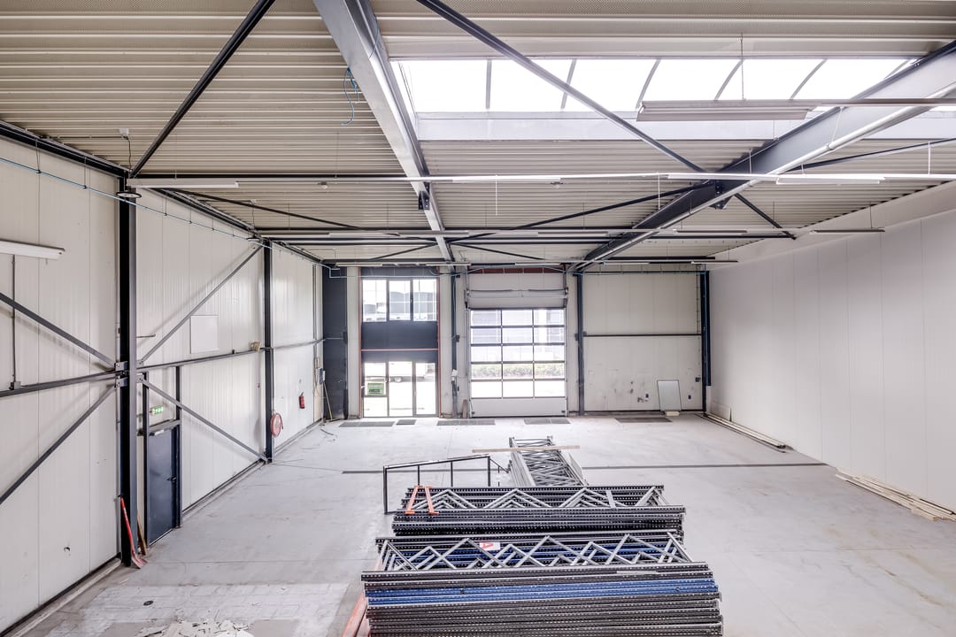 Aan de voorzijde is de bedrijfsruimte voorzien van een moderne glazen pui met loopdeur, dit geeft het gebouw een representatieve entree. Naast de glazen pui is en een elektrisch bedienbare overheaddeur aanwezig van groot formaat. Het bedrijfsgebouw is verder voorzien van een gevlinderde betonvloer, verlichting en elektrapunten. De verdiepingsvloer aan de achterzijde van de bedrijfsruimte is uitgevoerd in beton biedt extra flexibiliteit in gebruik voor opslag of nader te realiseren kantoorruimte.