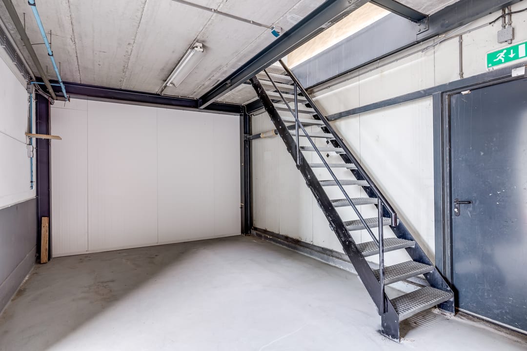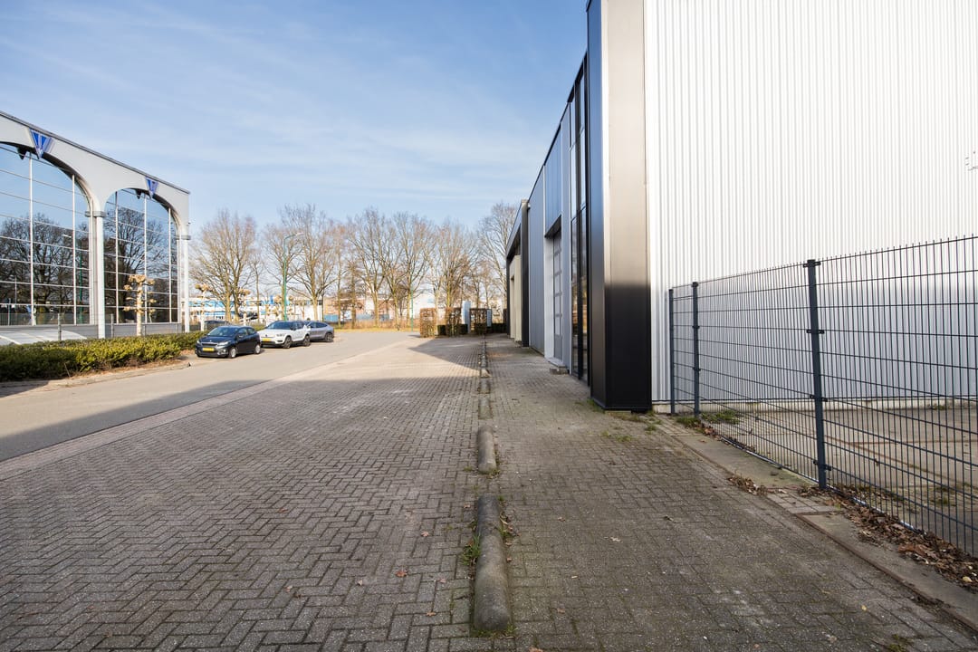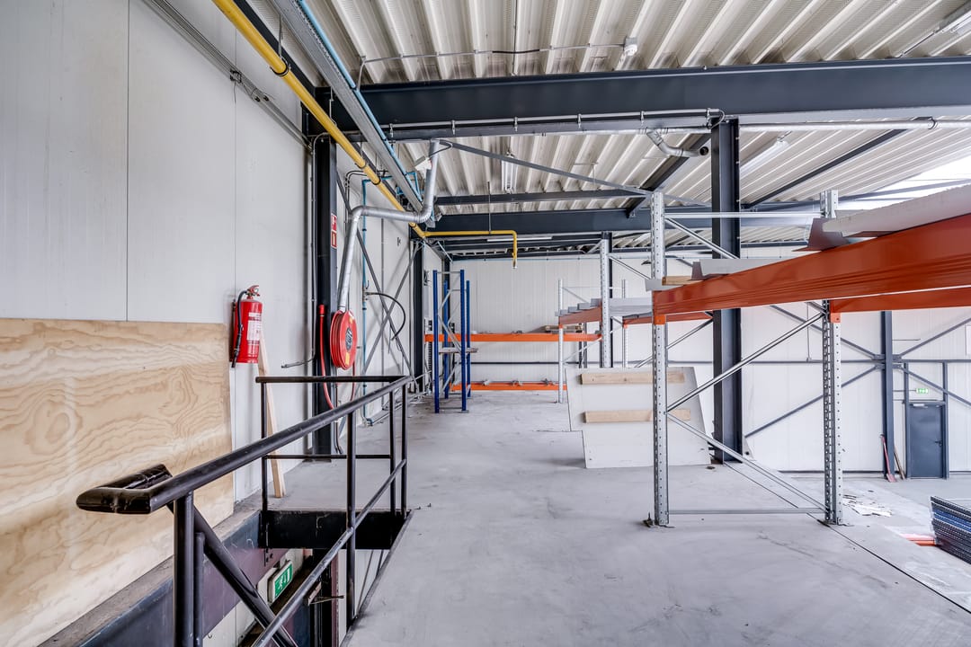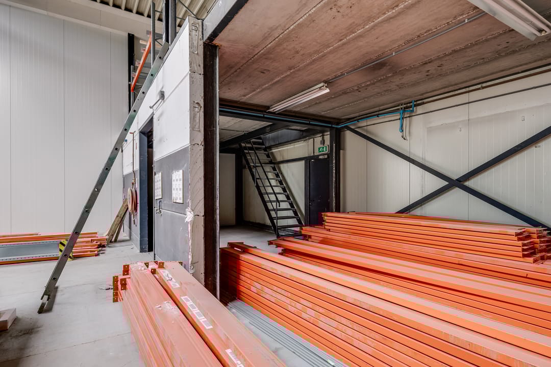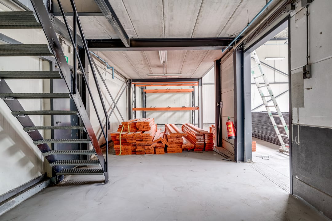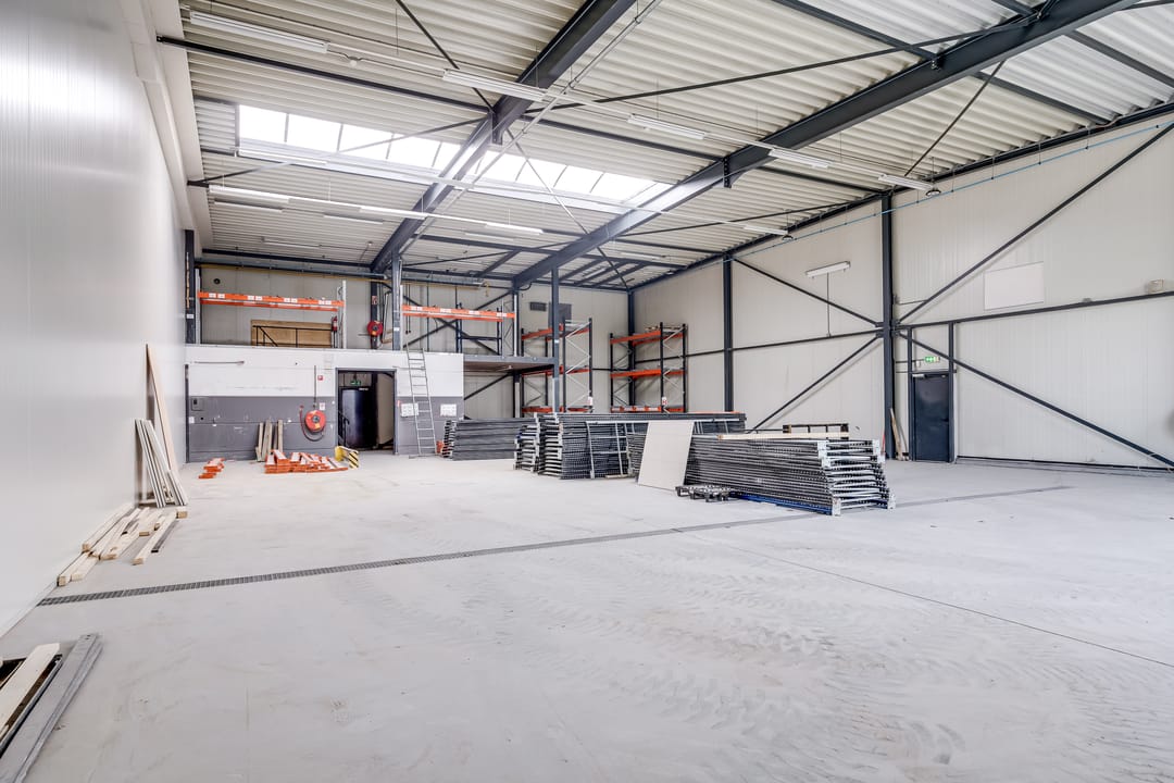 Aan de voorzijde is de bedrijfsruimte voorzien van een moderne glazen pui met loopdeur, dit geeft het gebouw een representatieve entree. Naast de glazen pui is en een elektrisch bedienbare overheaddeur aanwezig van groot formaat. Het bedrijfsgebouw is verder voorzien van een gevlinderde betonvloer, verlichting en elektrapunten. De verdiepingsvloer aan de achterzijde van de bedrijfsruimte is uitgevoerd in beton biedt extra flexibiliteit in gebruik voor opslag of nader te realiseren kantoorruimte.