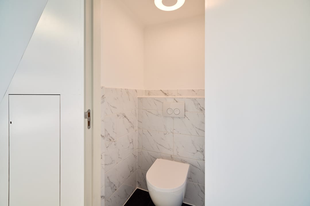 - Hal met meterkast, trapkast, spoelbak en modern afgewerkt toilet