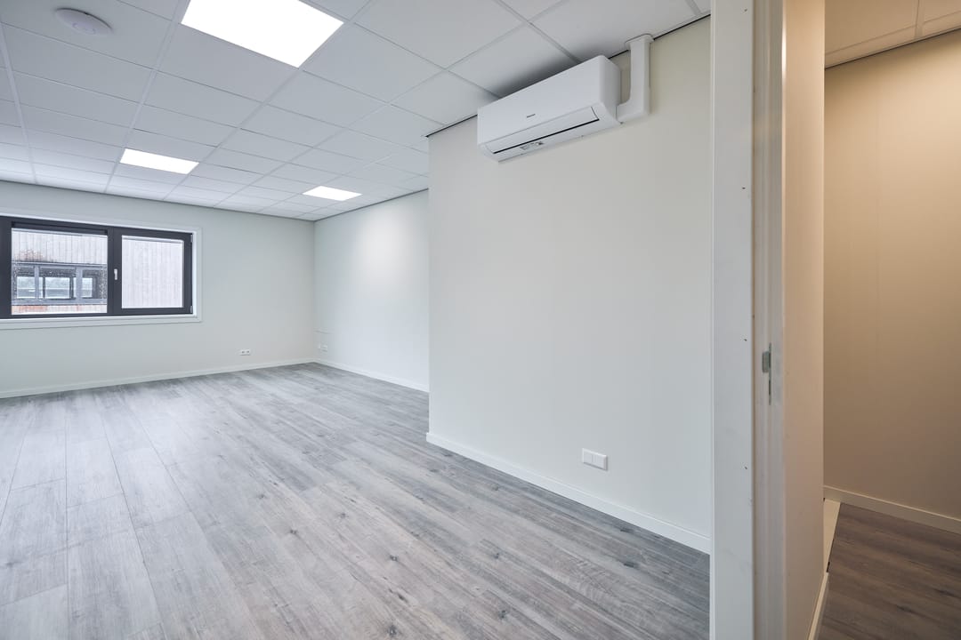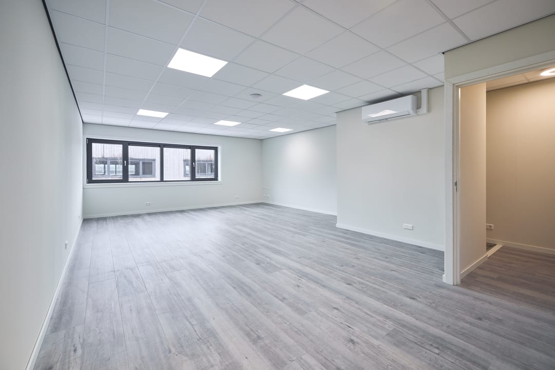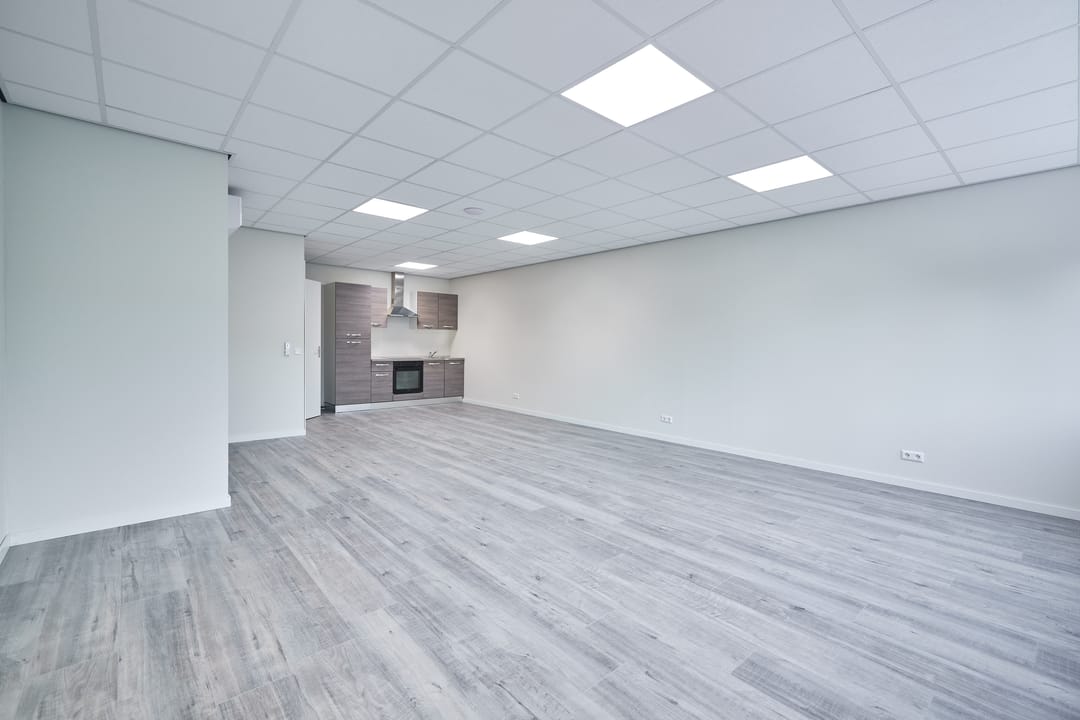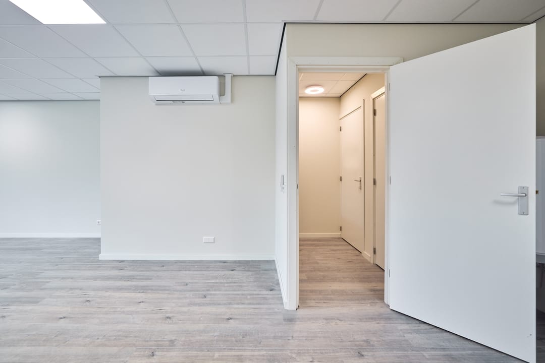 Wat deze unit daarnaast onderscheidt, is het hoge comfortniveau op de verdieping. Hier vind je een lichte, open kantoorruimte, ruim genoeg voor meerdere werkplekken, een showroom of vergaderruimte. De ruimte is voorzien van een airco-installatie die zowel kan koelen als verwarmen, en profiteert van veel daglicht dankzij de grote raampartijen aan de voorzijde. Voor een snelle en stabiele internetverbinding is er glasvezelinternet aanwezig in de meterkast, een bekabelde data-aansluiting in de muur én een draadloos access point dat verbonden is met de router. Verder is er een luxe keuken aanwezig, compleet met een 4-pits inductiekookplaat, oven, afzuigkap, koelkast, vriezer en spoelbak. Op deze verdieping bevindt zich ook een moderne badkamer met douche en toilet. In totaal beschikt de unit dus over twee toiletten, één beneden en één boven.