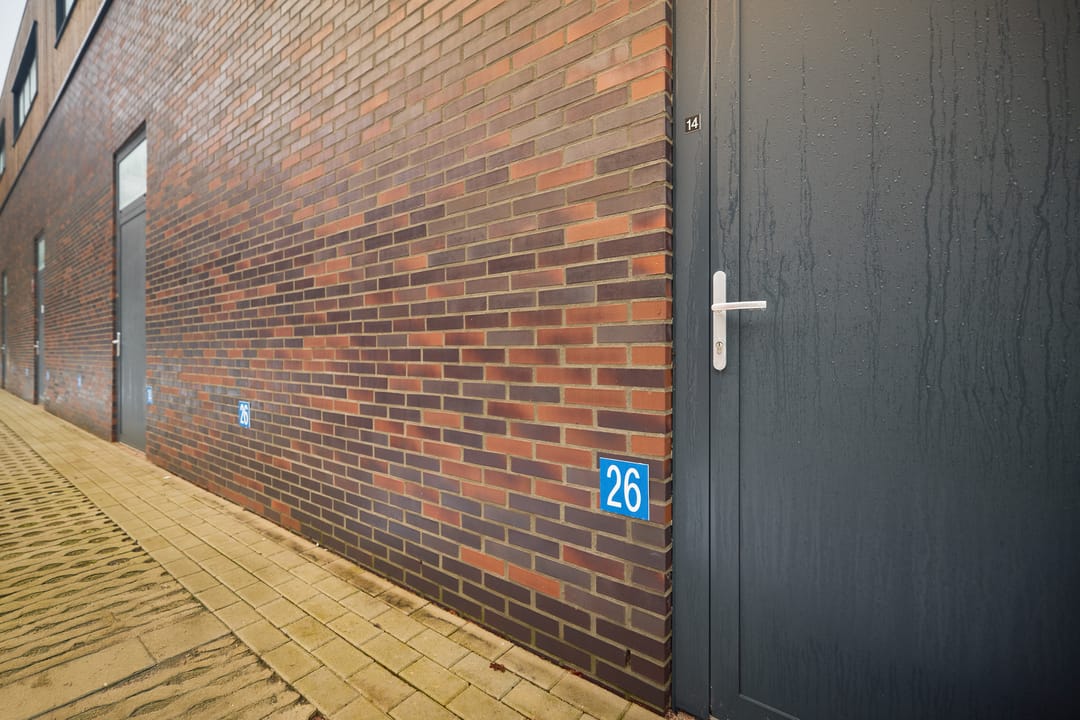 Op de begane grond beschik je over een ruime bedrijfsruimte met een eigen toilet, spoelbak, trapkast en een hal met toegang tot de voordeur en meterkast. Direct voor de entree liggen twee genummerde parkeerplaatsen die bij de unit horen – altijd plek voor de deur dus. De elektrische overheaddeur maakt de ruimte uitstekend toegankelijk voor goederen of voertuigen, met het gemak van bediening op afstand.