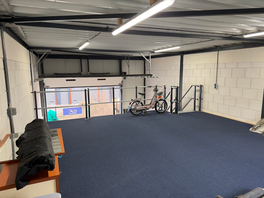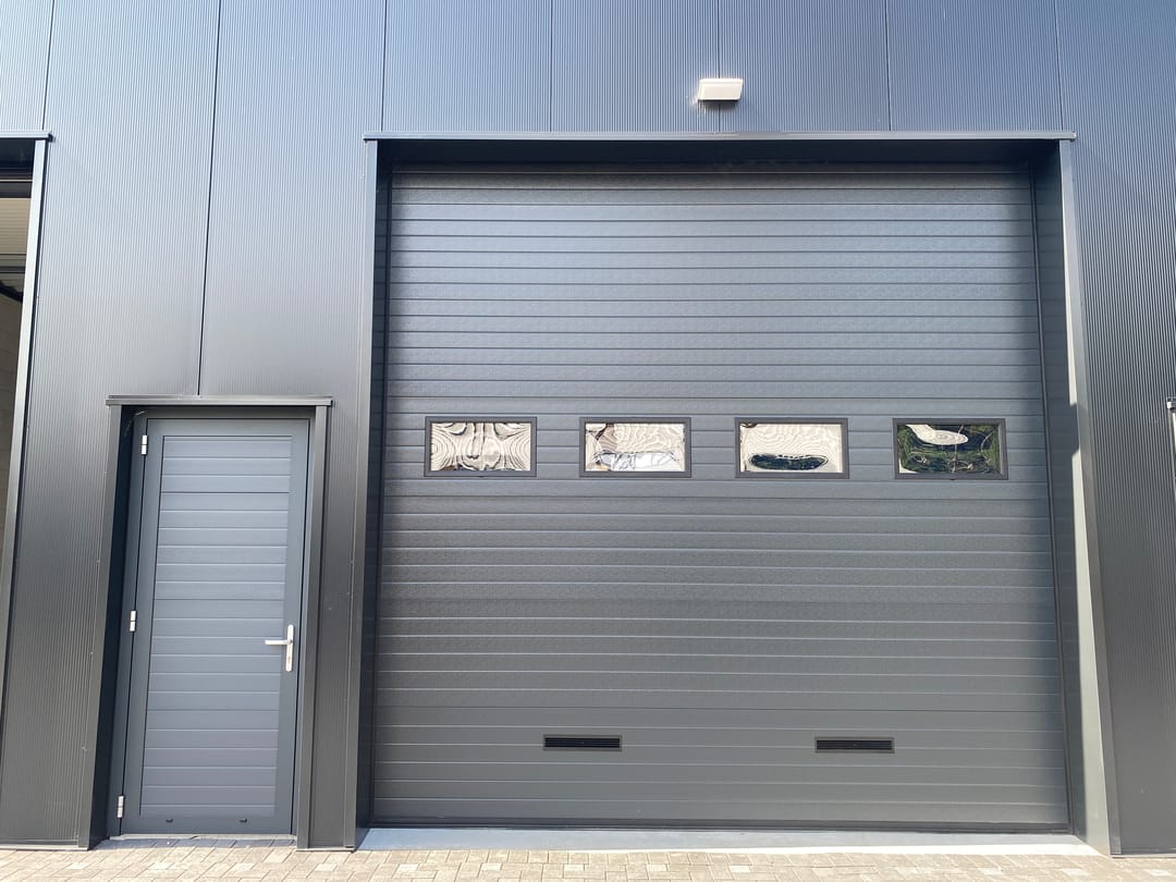 - elektrisch bediende overheaddeur (zowel de hoogte als de breedte hiervan bedraagt 4 meter) met separate loopdeur;
