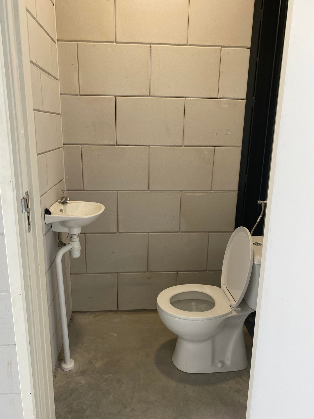 - Overhead doors, concrete floor and toilet