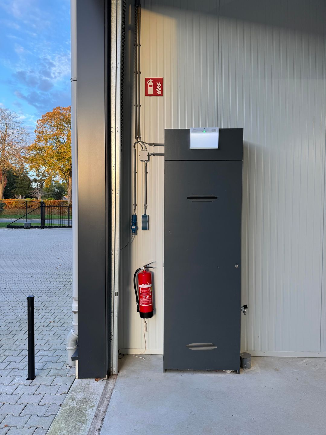 - Beschikt over een eigen meterkast met krachtstroom, elektrische overheaddeur en vloeistofdichte betonvloer.;