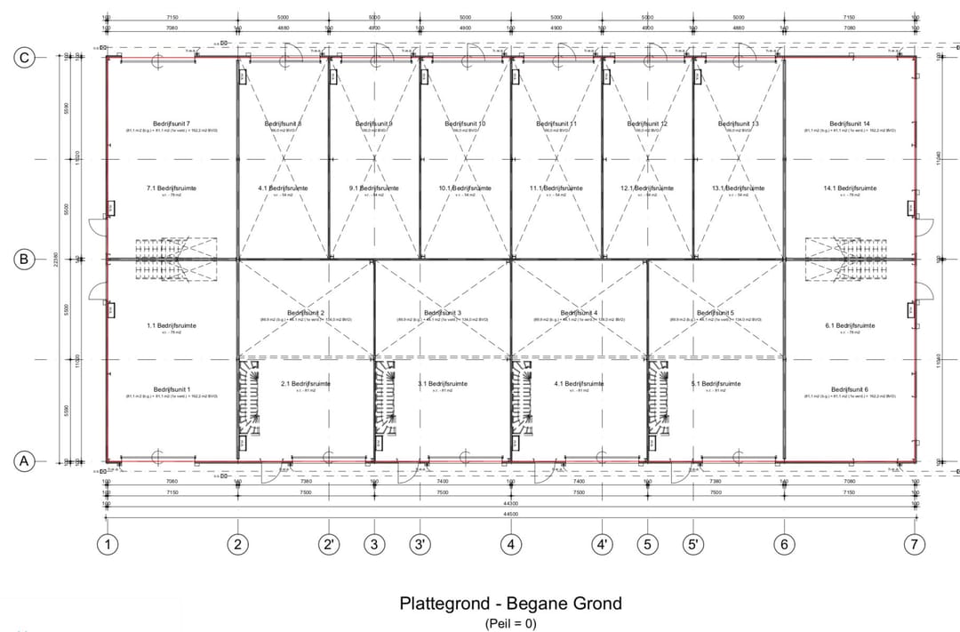 Het te realiseren bedrijfsverzamelgebouw wordt opgedeeld in 12 bedrijfsunits vanaf 54 m² en 2 kopunits aan de voorzijde.