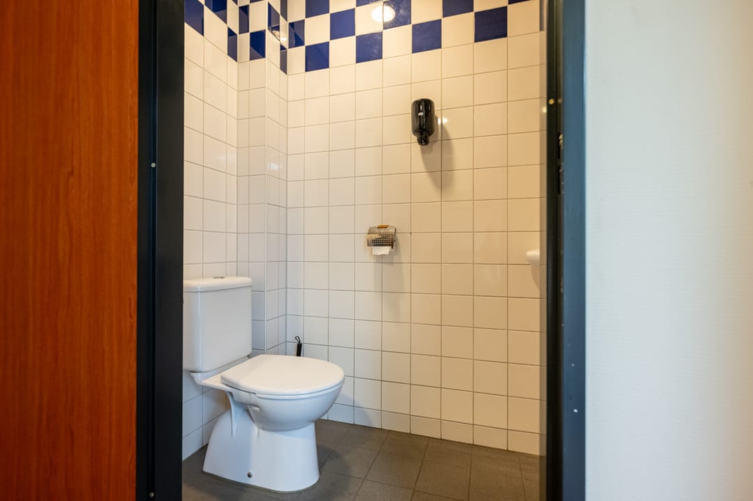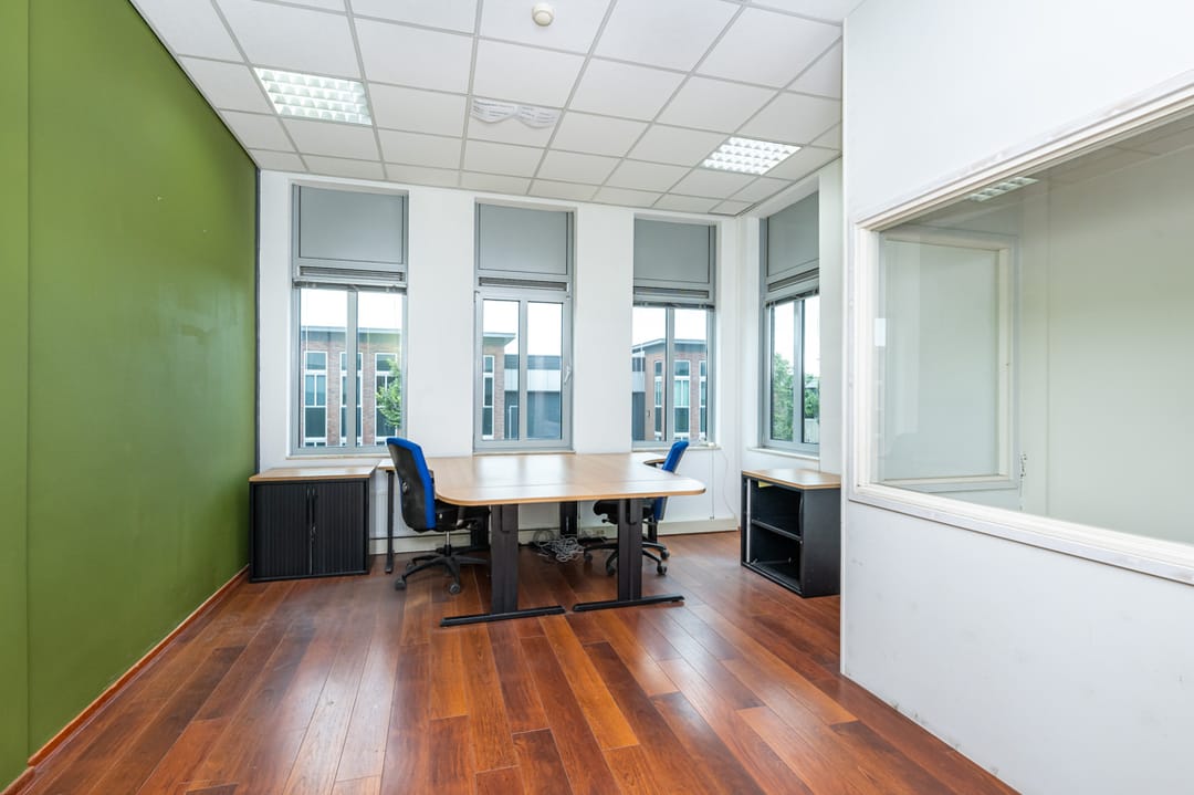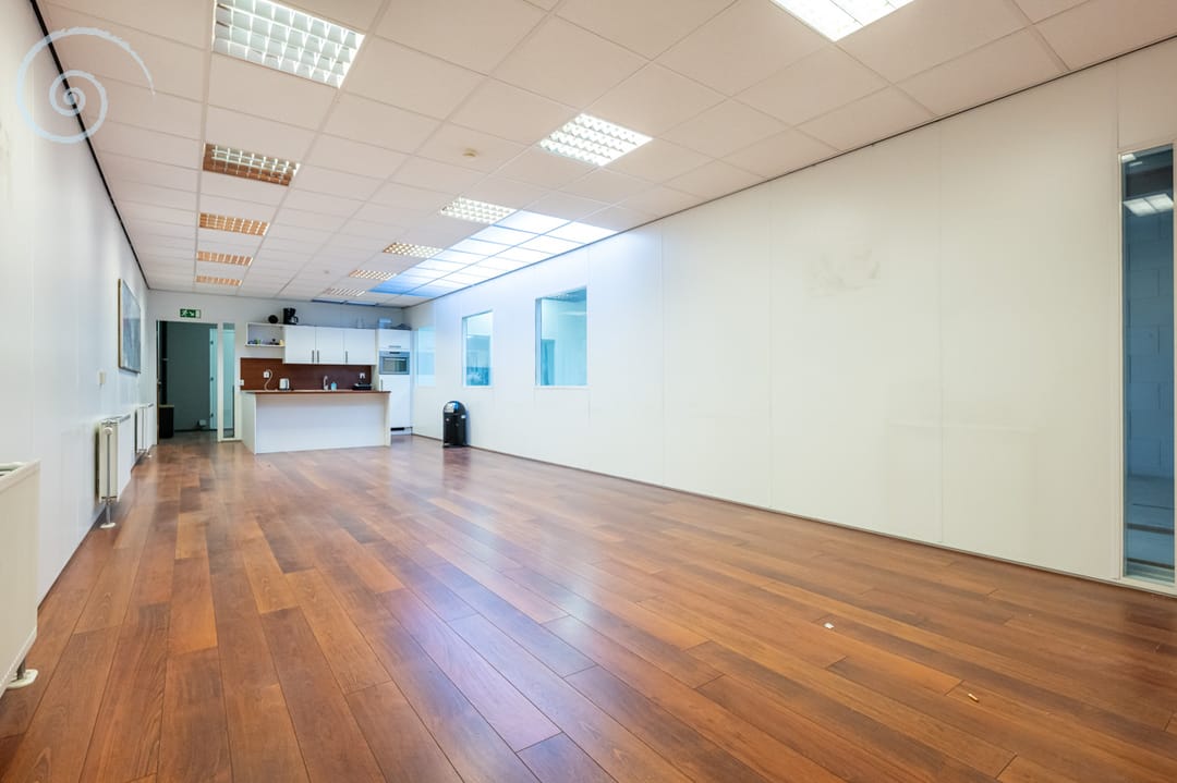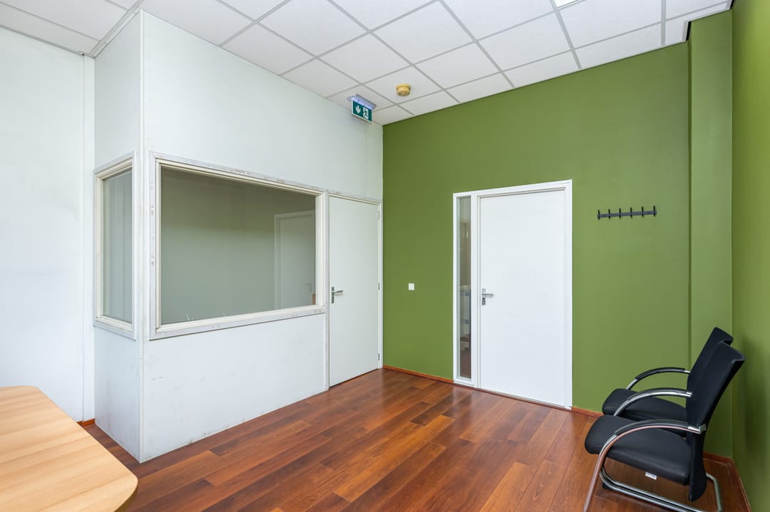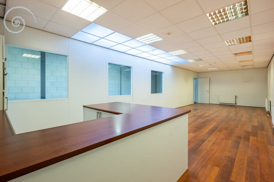 De kantoorruimte en kantine zijn voorzien van laminaatvloeren, systeemplafonds en lichtarmaturen.