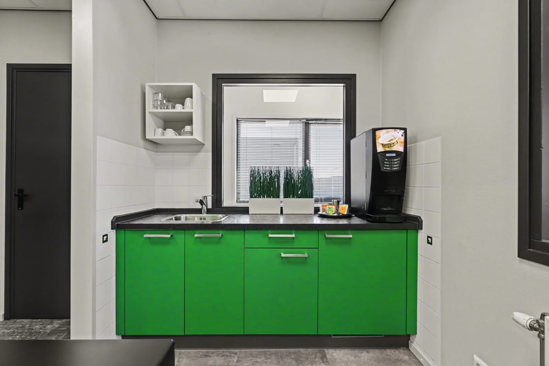 Ook het kantoor en de overige ruimten zijn praktisch uitgerust, onder meer met centrale permanente afzuiging in kantoor en toilet met afstandsbediening, jaloezieën, een inpandige brievenbus, een sleutelkluis en diverse inventaris, waaronder bureau’s, stoelen en magazijnrekken.